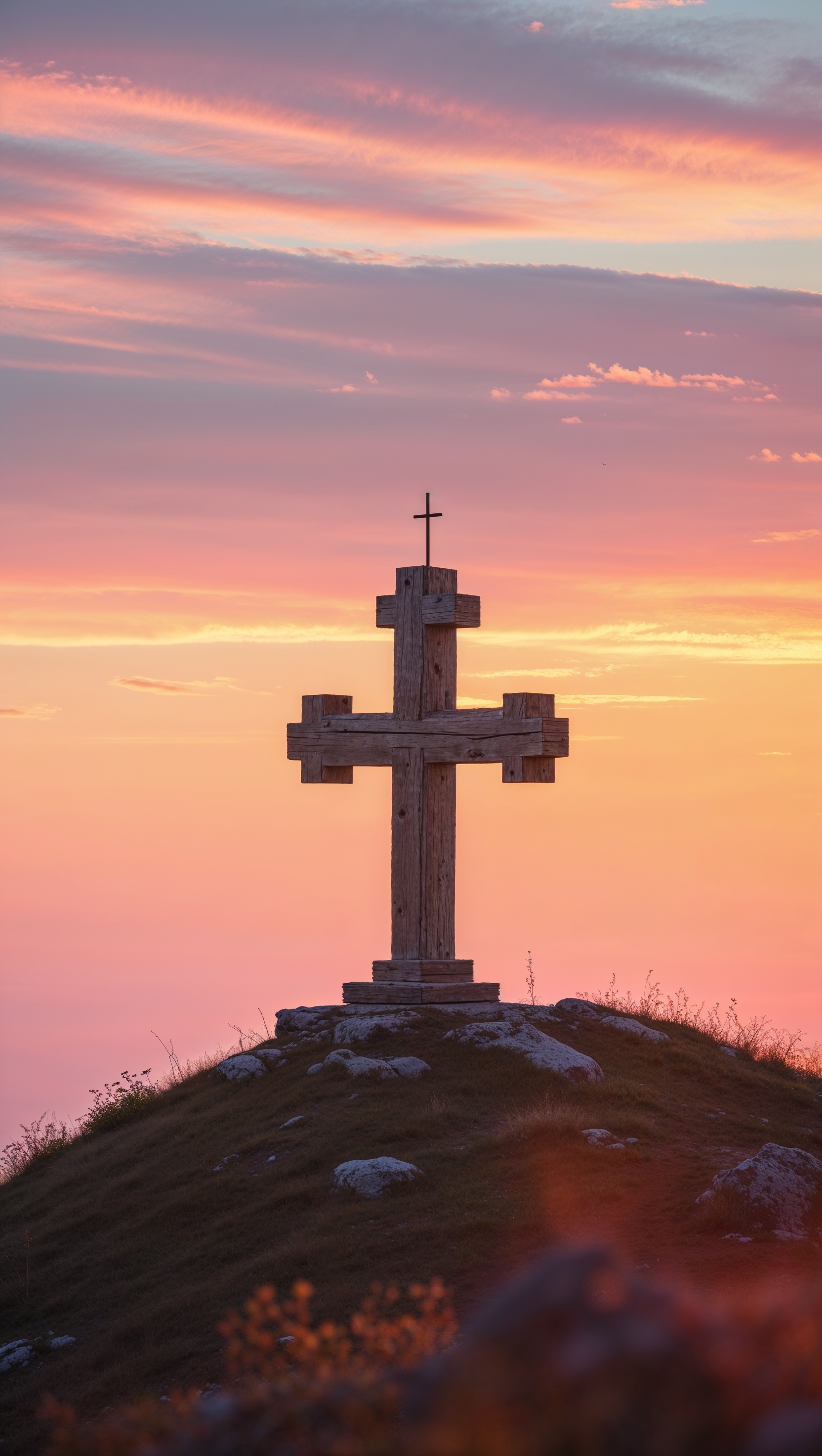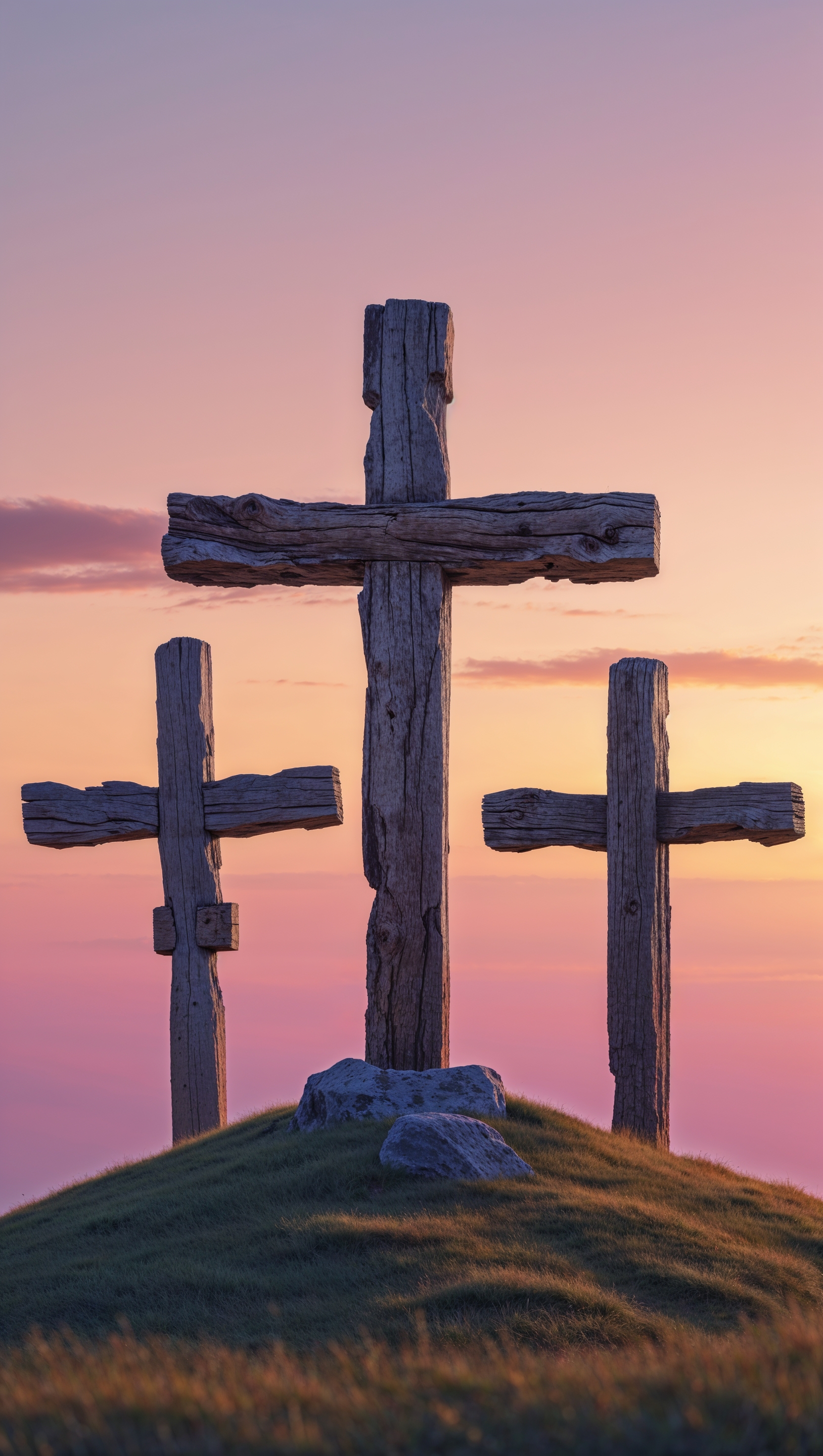 1664x2944 Soft sunset behind three crosses on a hilltop, symbol of Calvary