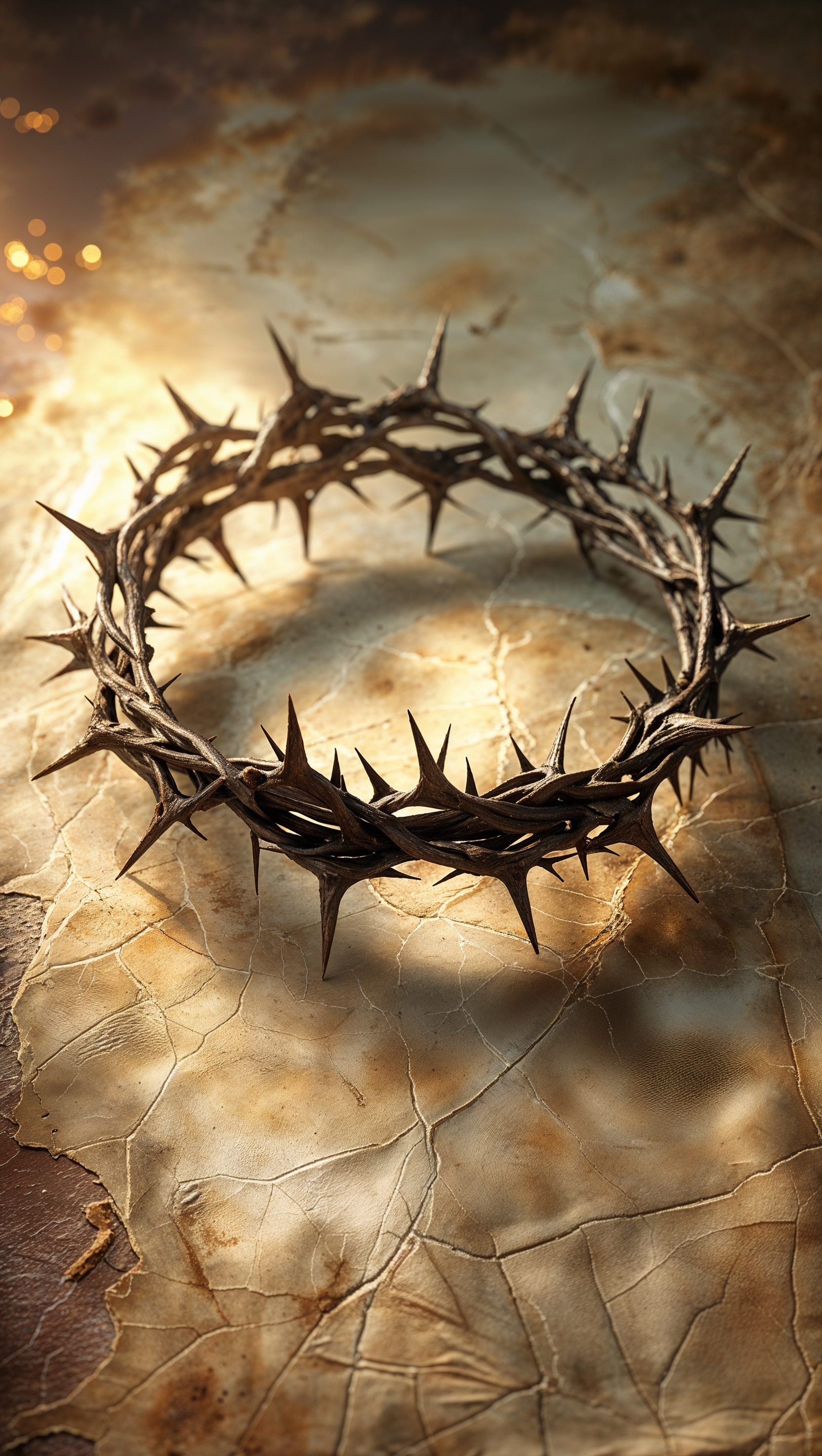 1664x2944 Crown of thorns over a textured parchment background, soft lighting