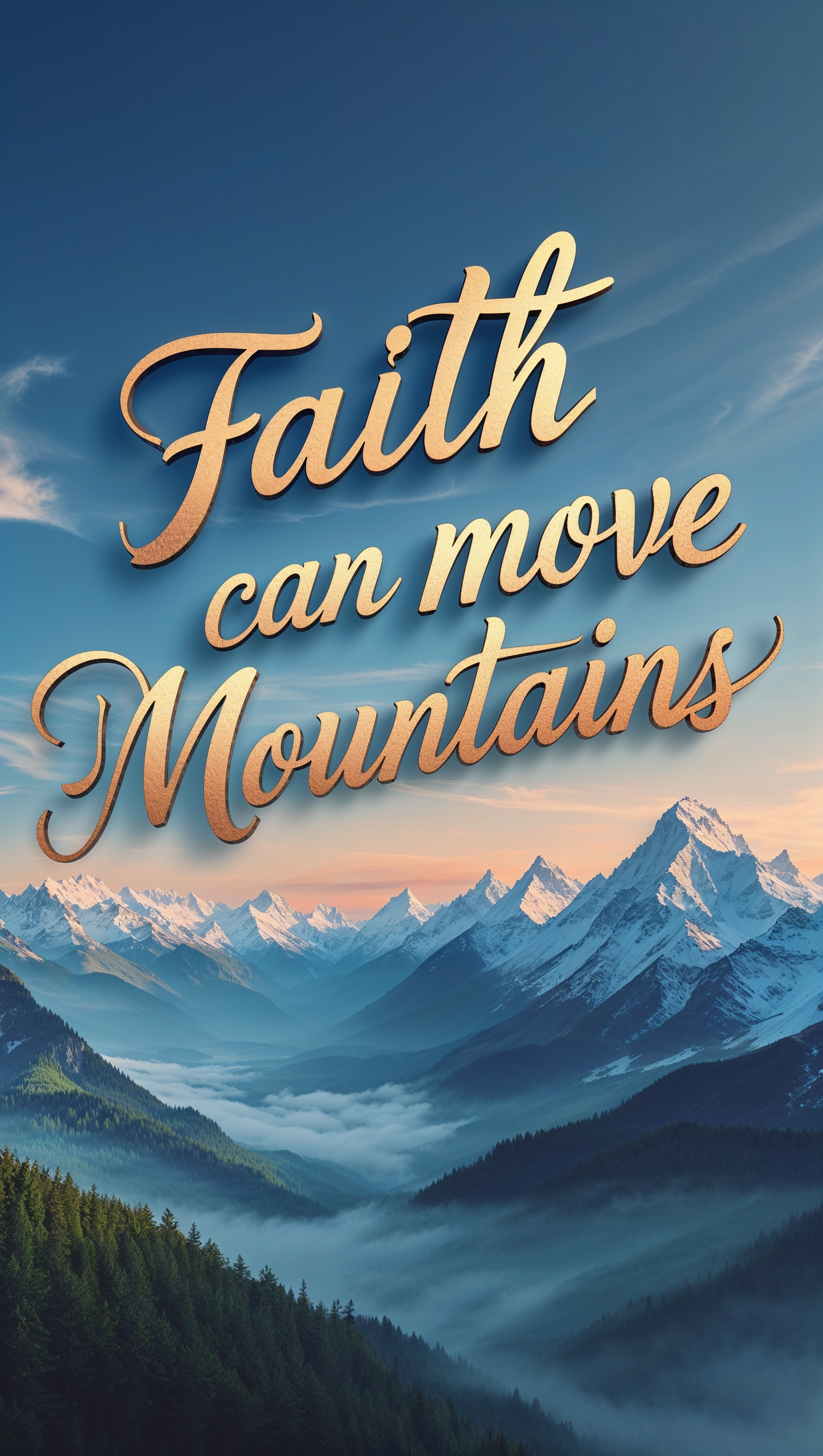 1664x2944 Vertical wallpaper of a mountain scene with “Faith Can Move Mountains” verse