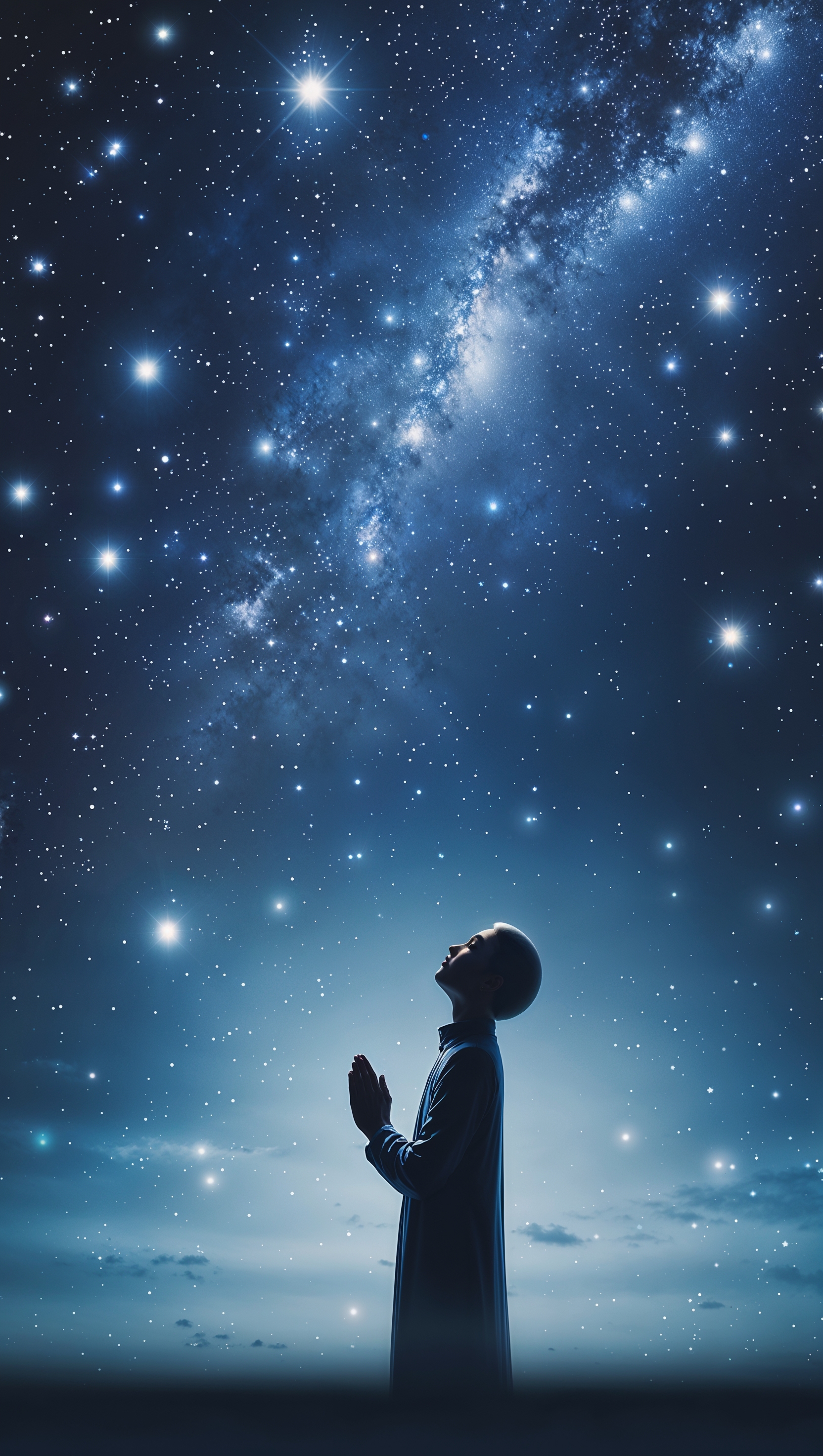 1664x2944 Silhouette of a praying figure beneath a starry night sky, peaceful and spiritual