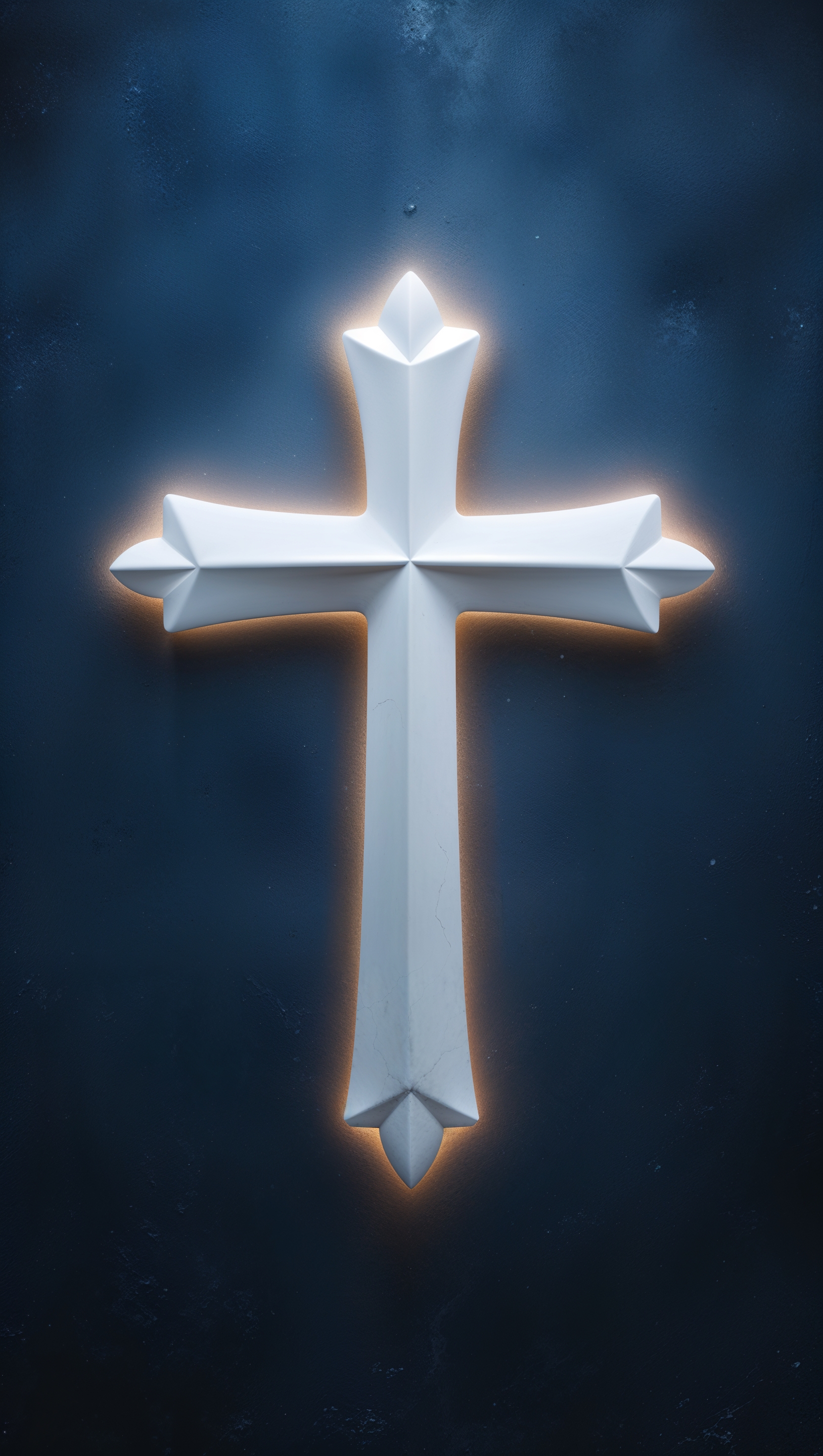 1664x2944 Simple white cross on a dark blue background with subtle glowing outline