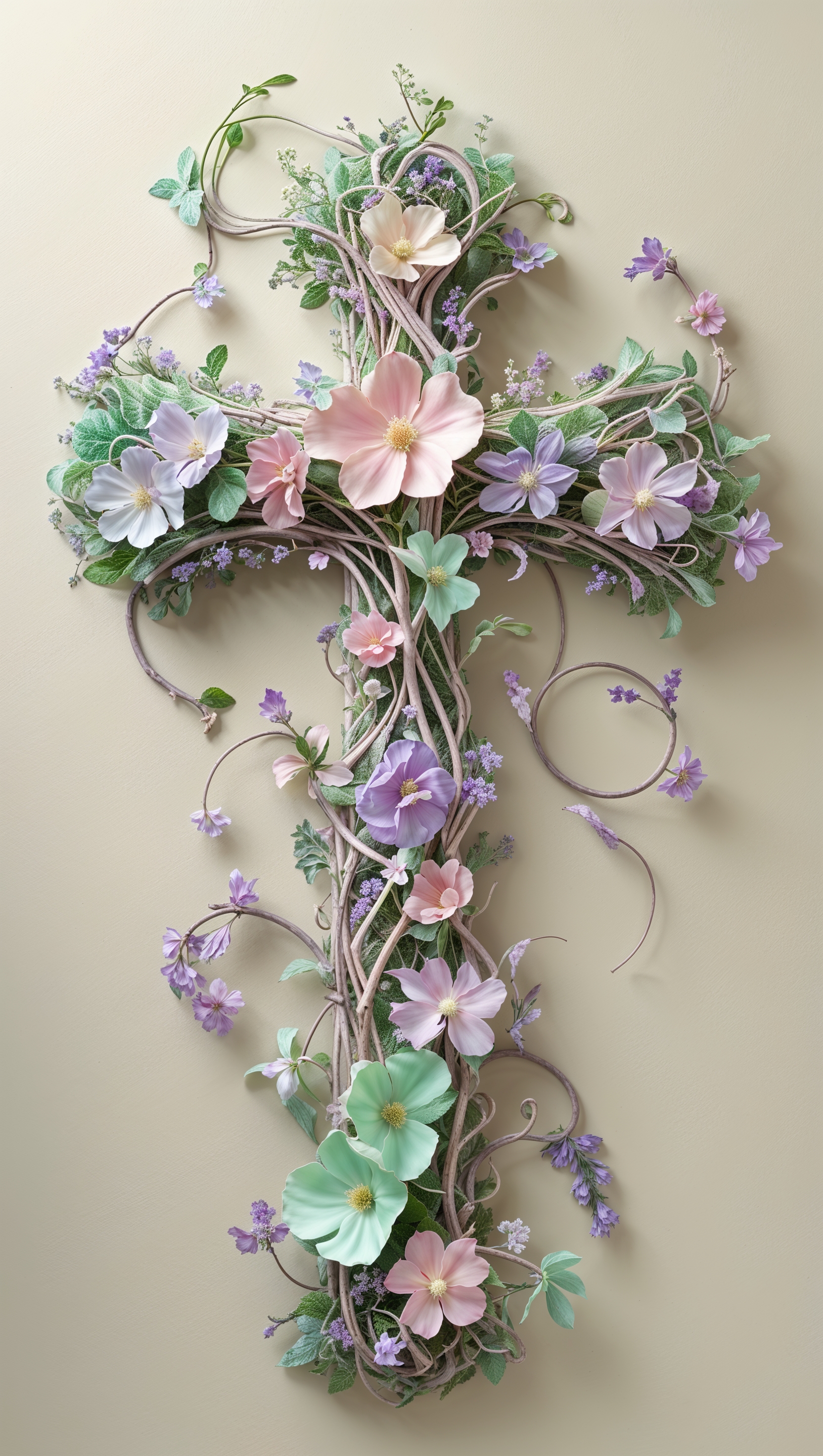 1664x2944 Elegant cross made from vines and flowers, symbolic and natural