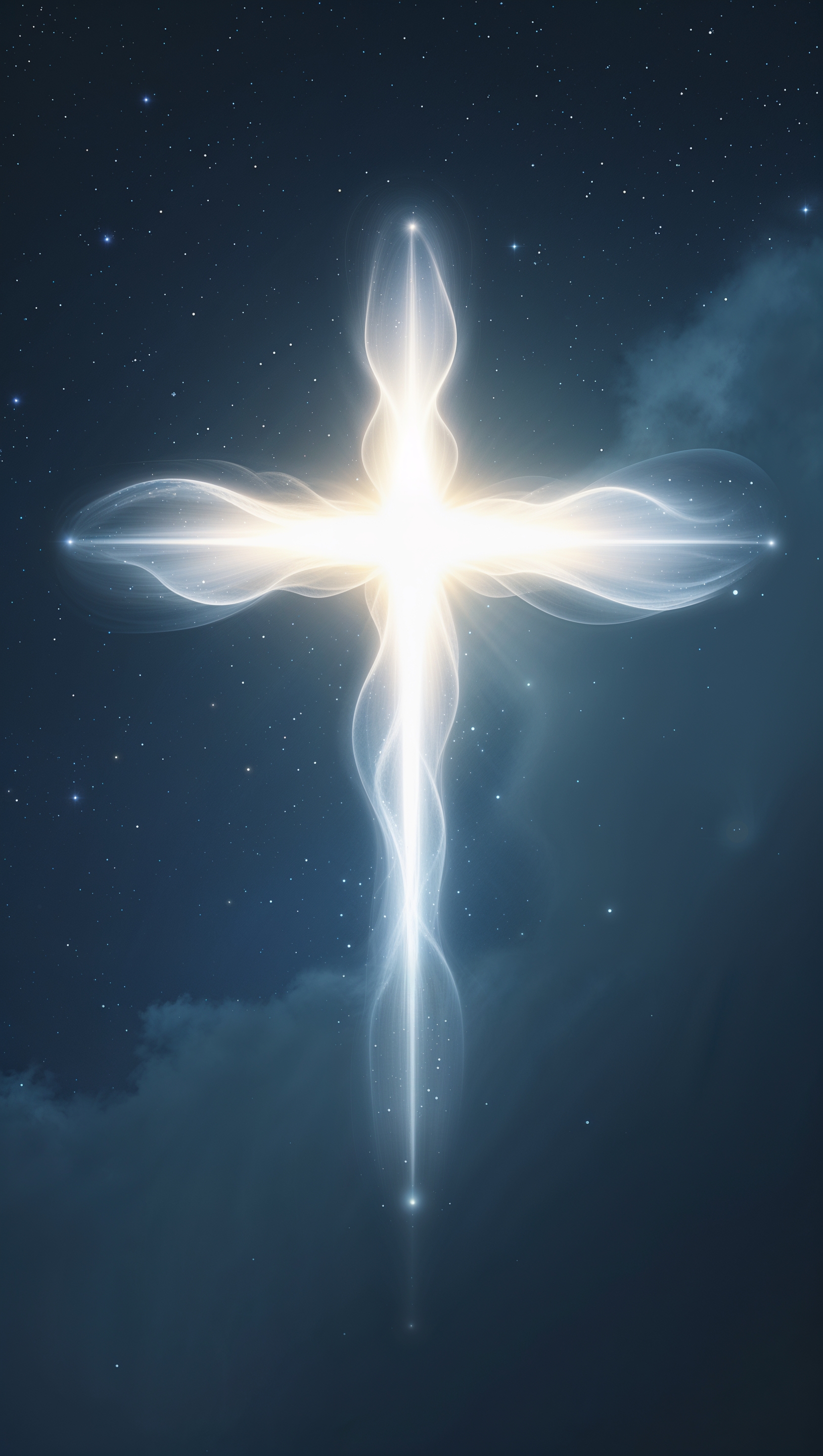 1664x2944 White glowing light forming a cross in a dark sky with subtle stars