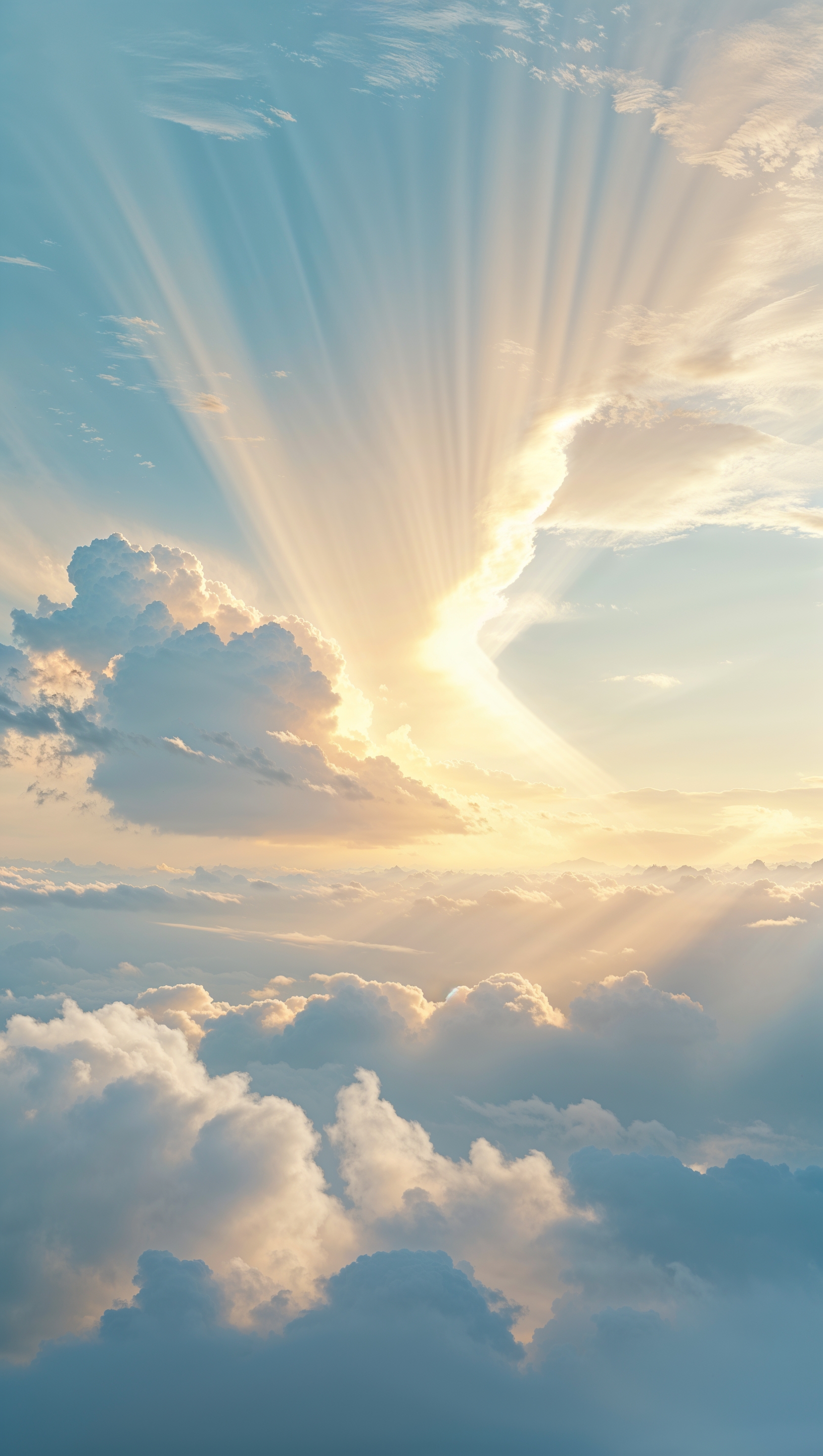 1664x2944 Heavenly light breaking through clouds with soft rays and peaceful sky