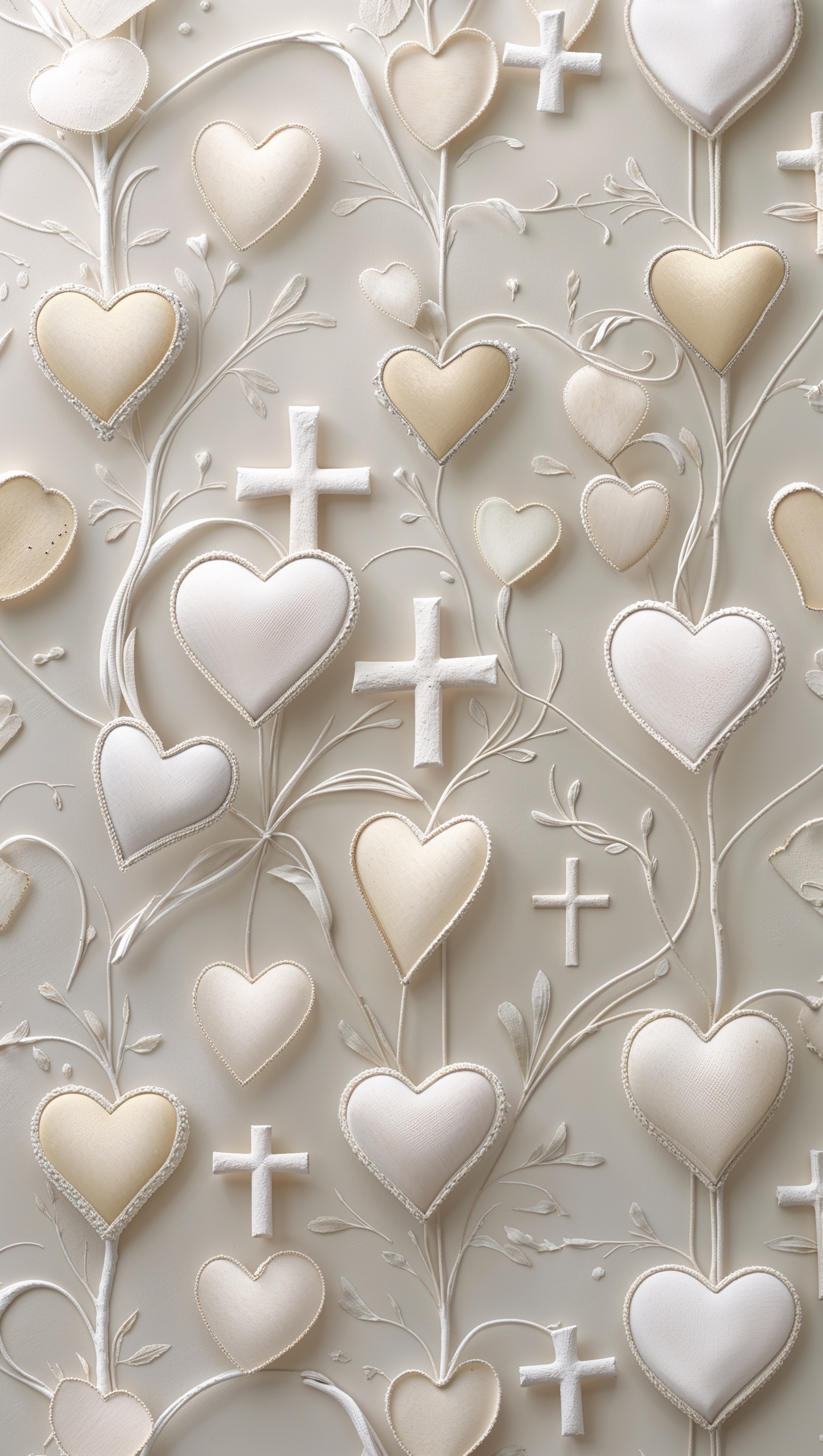 1664x2944 Hearts and crosses pattern in soft neutral tones, aesthetic and gentle