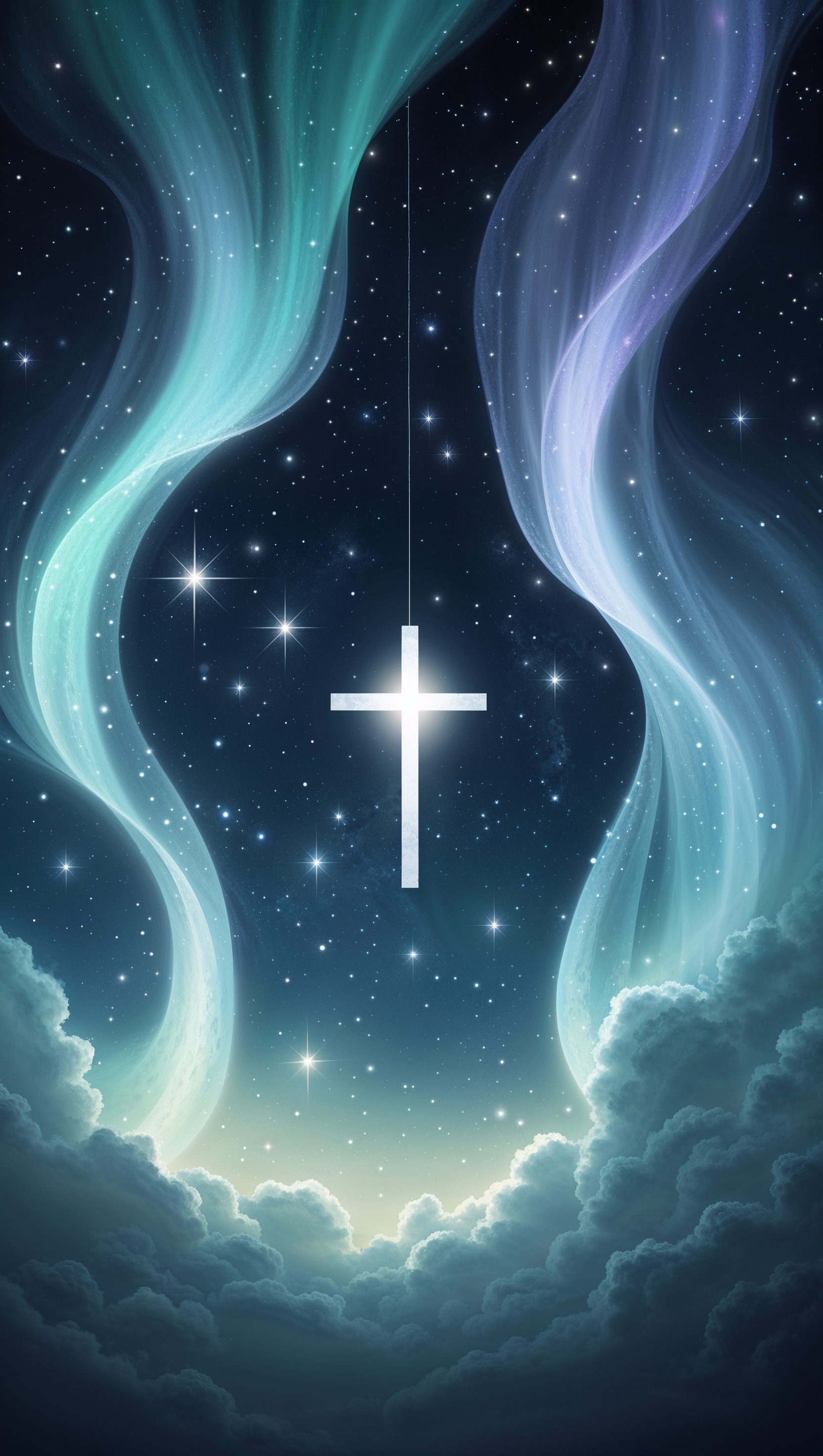1664x2944 Starry night sky with soft white cross and gentle aurora glow
