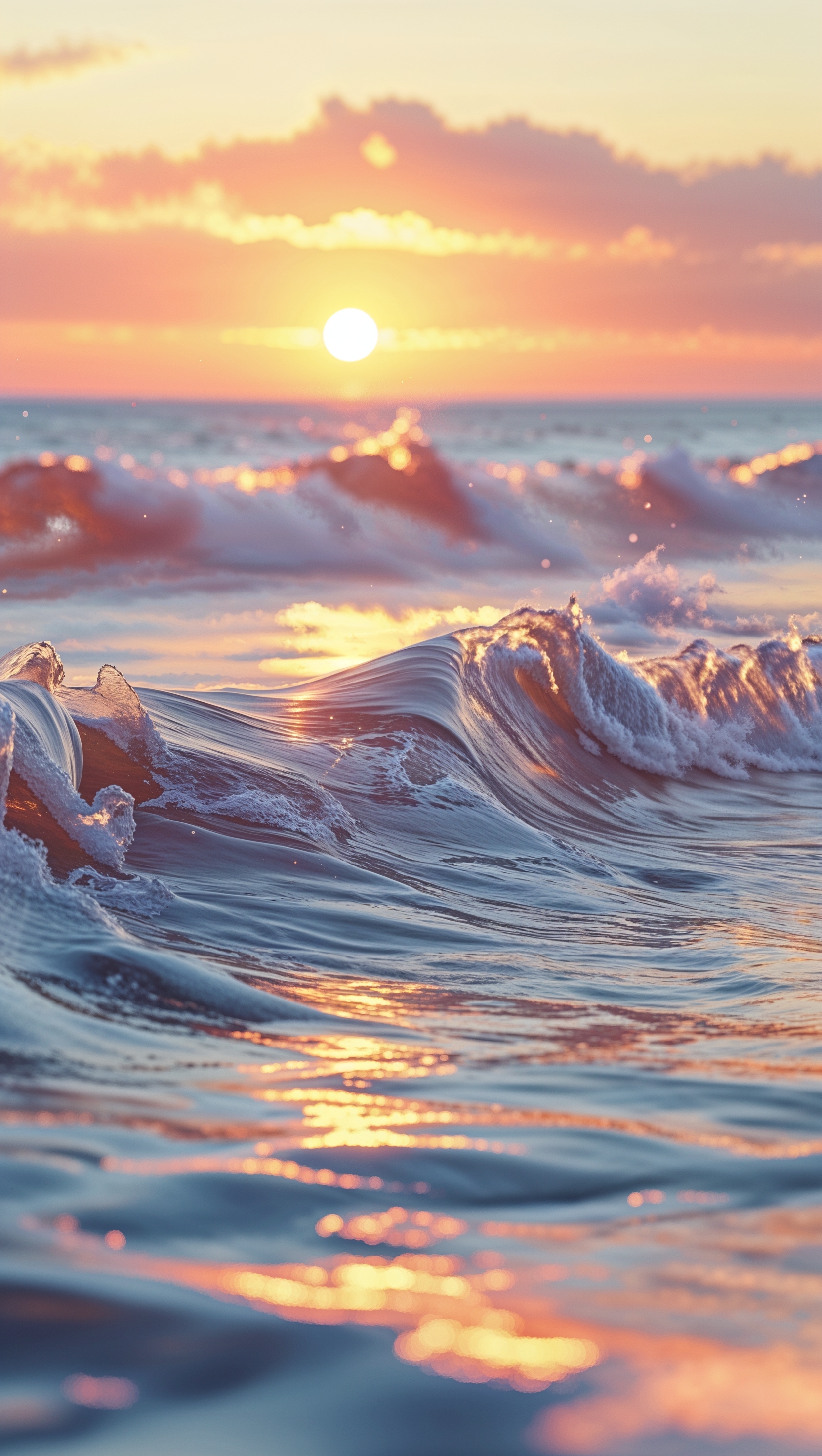 1664x2944 Peaceful ocean waves under a golden sunset, high resolution, vertical iPhone format