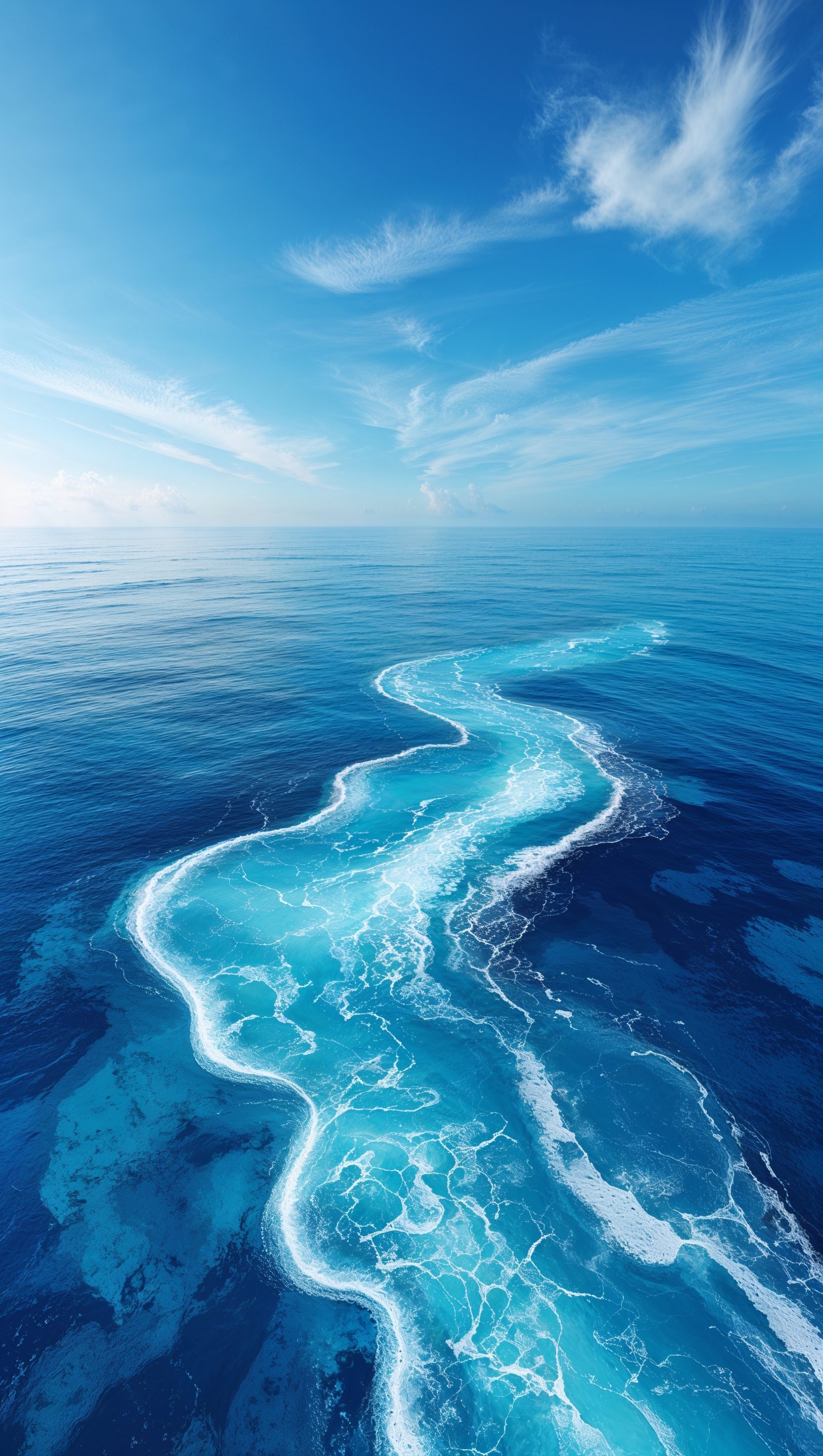 1664x2944 Aerial view of deep blue ocean with white foamy waves, clean minimalist style
