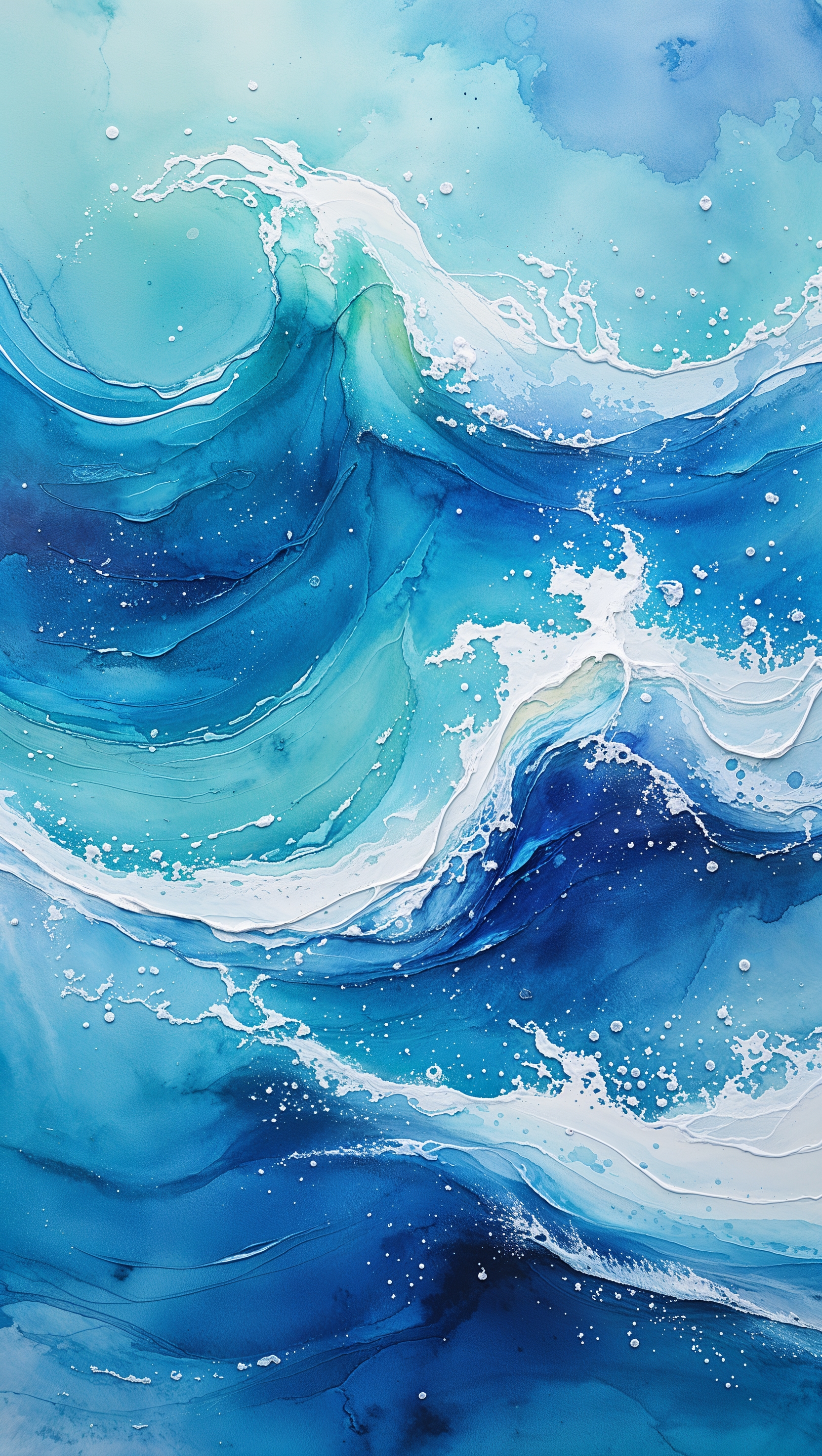1664x2944 Abstract ocean watercolor with soft blue gradients and white textures