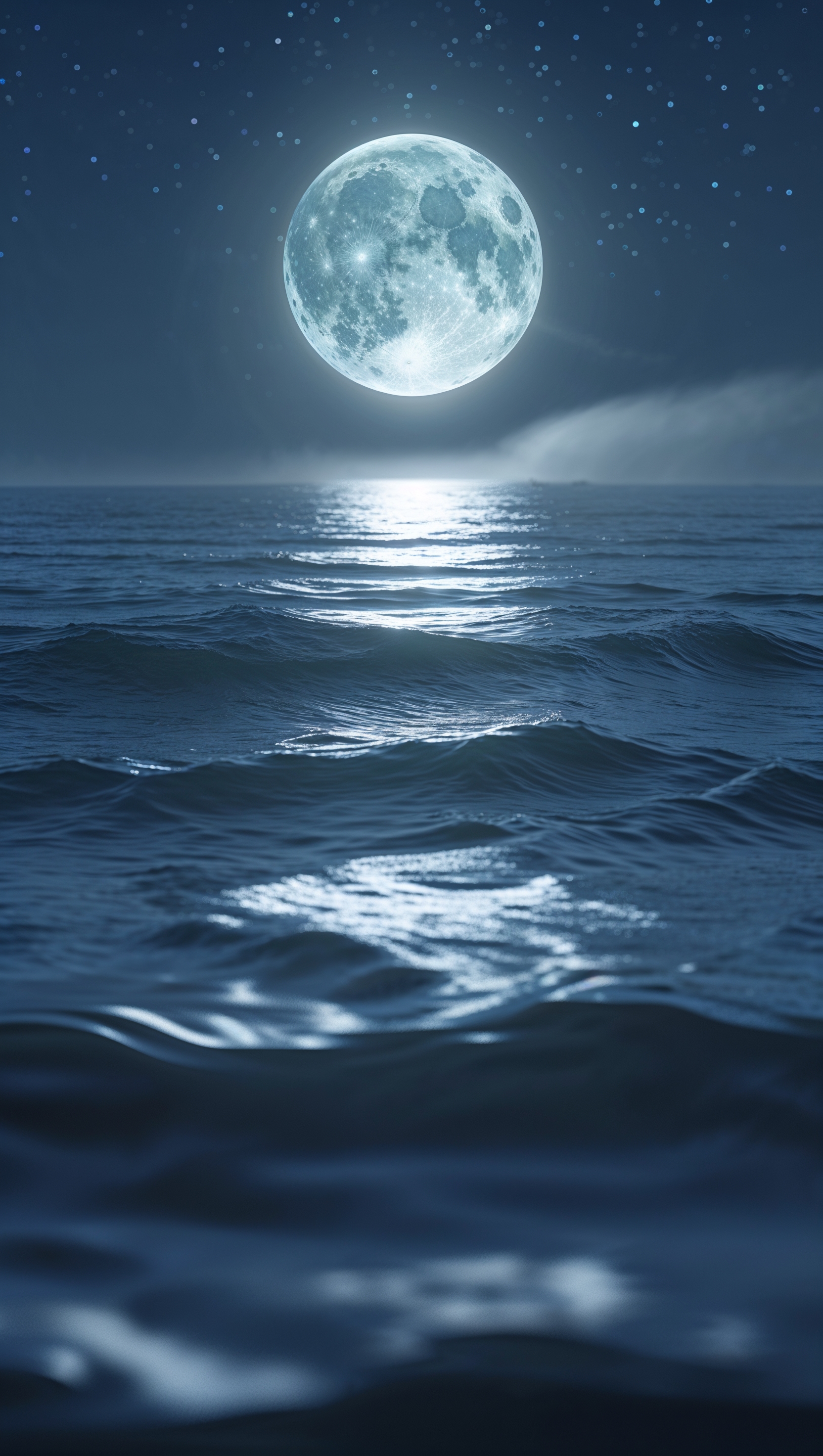 1664x2944 Nighttime ocean with moonlight reflecting on the waves, dreamy atmosphere