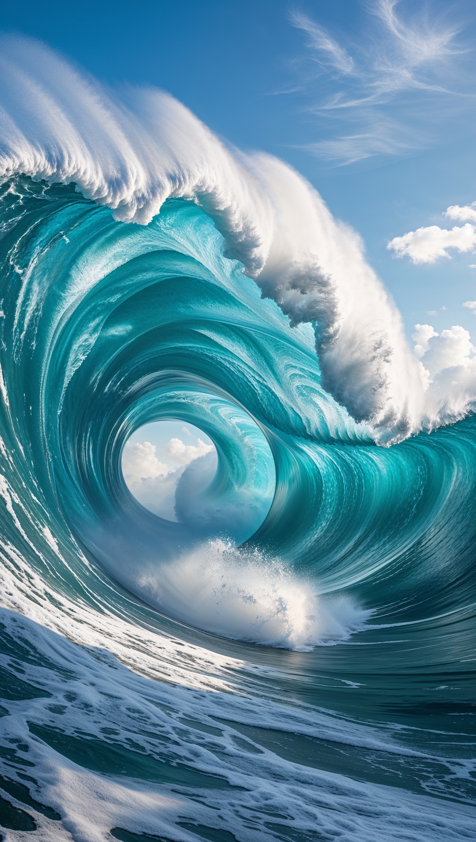 1664x2944 Giant ocean wave forming a tunnel, captured mid-motion, high energy