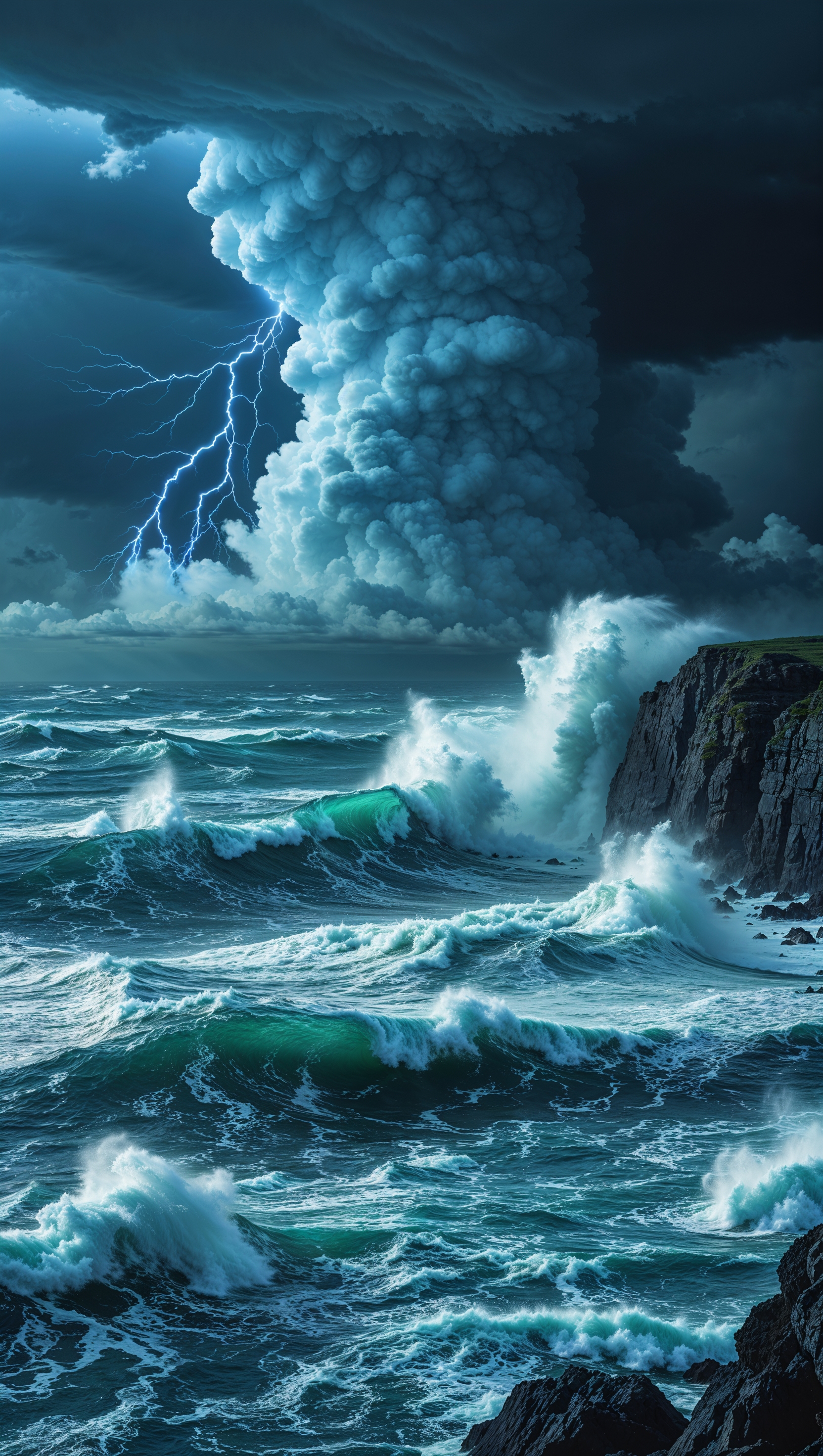 1664x2944 Stormy ocean with dark clouds and turbulent waves, dramatic and powerful
