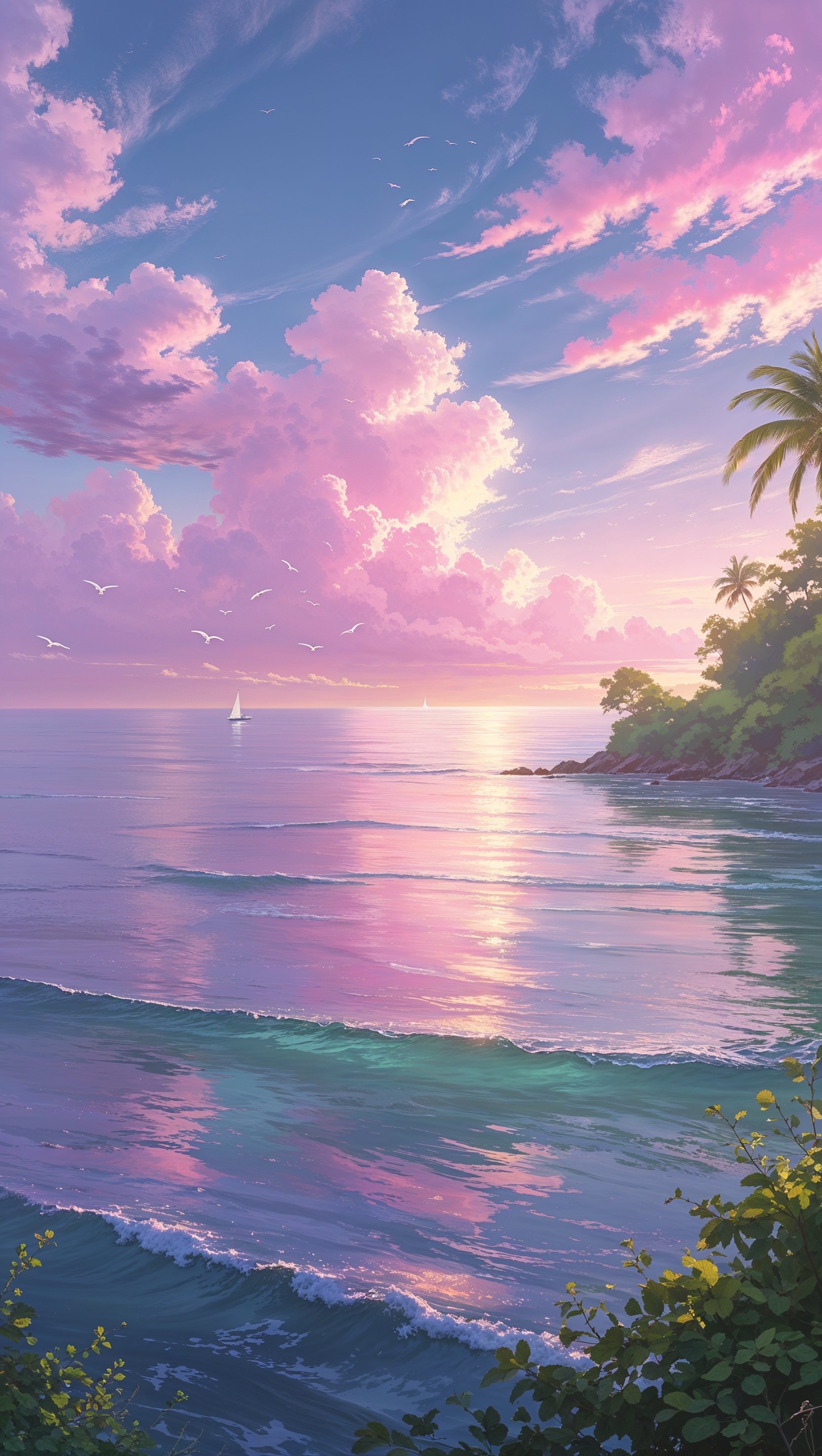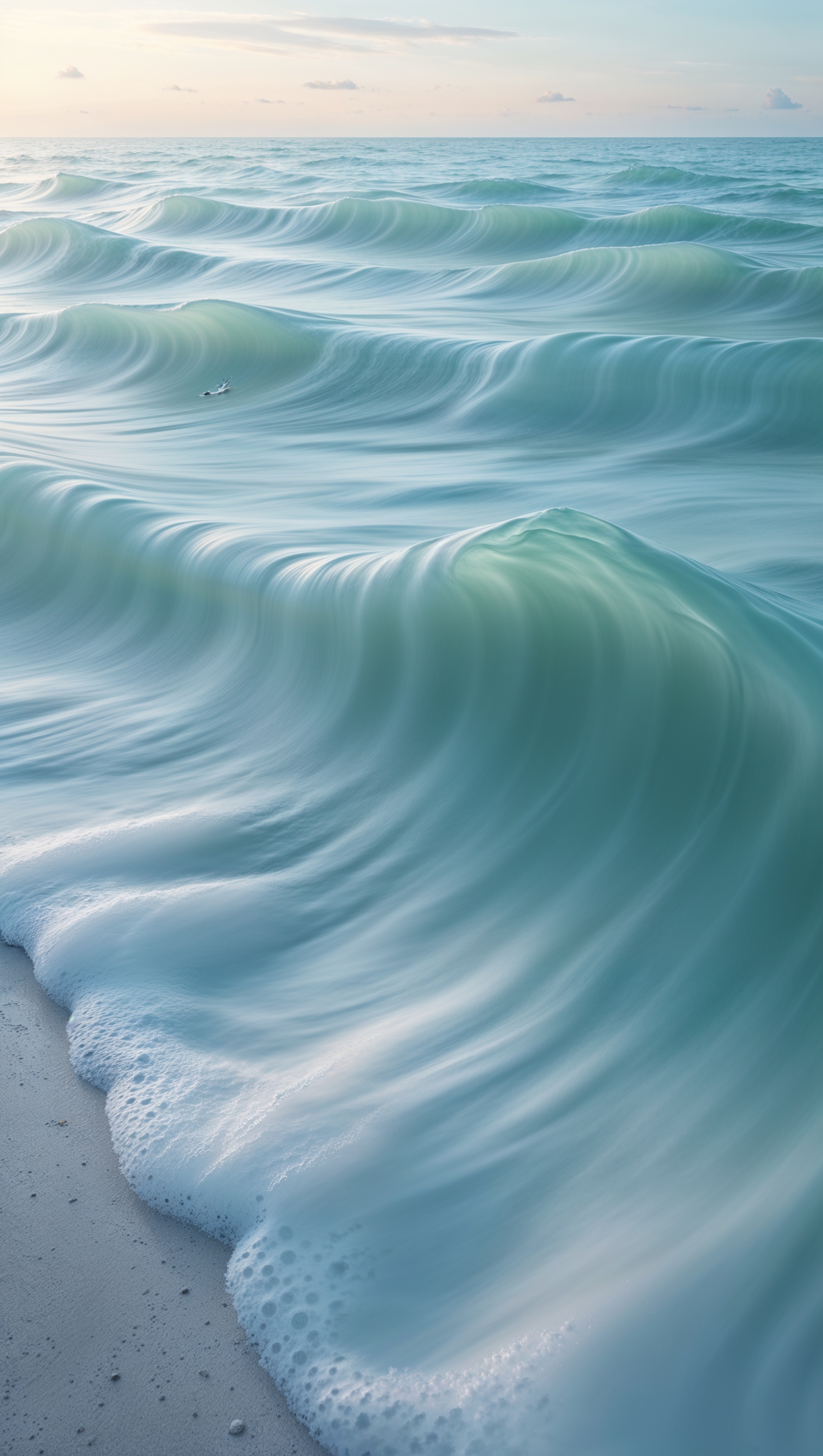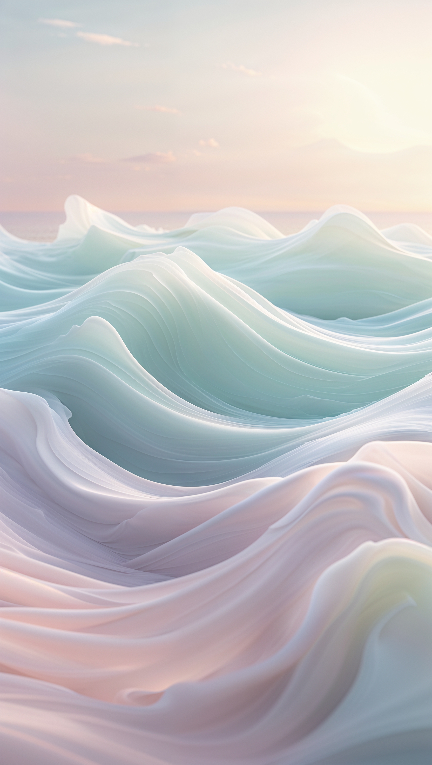 1664x2944 Pastel ocean waves blending into a dreamy sky, soft gradient transitions