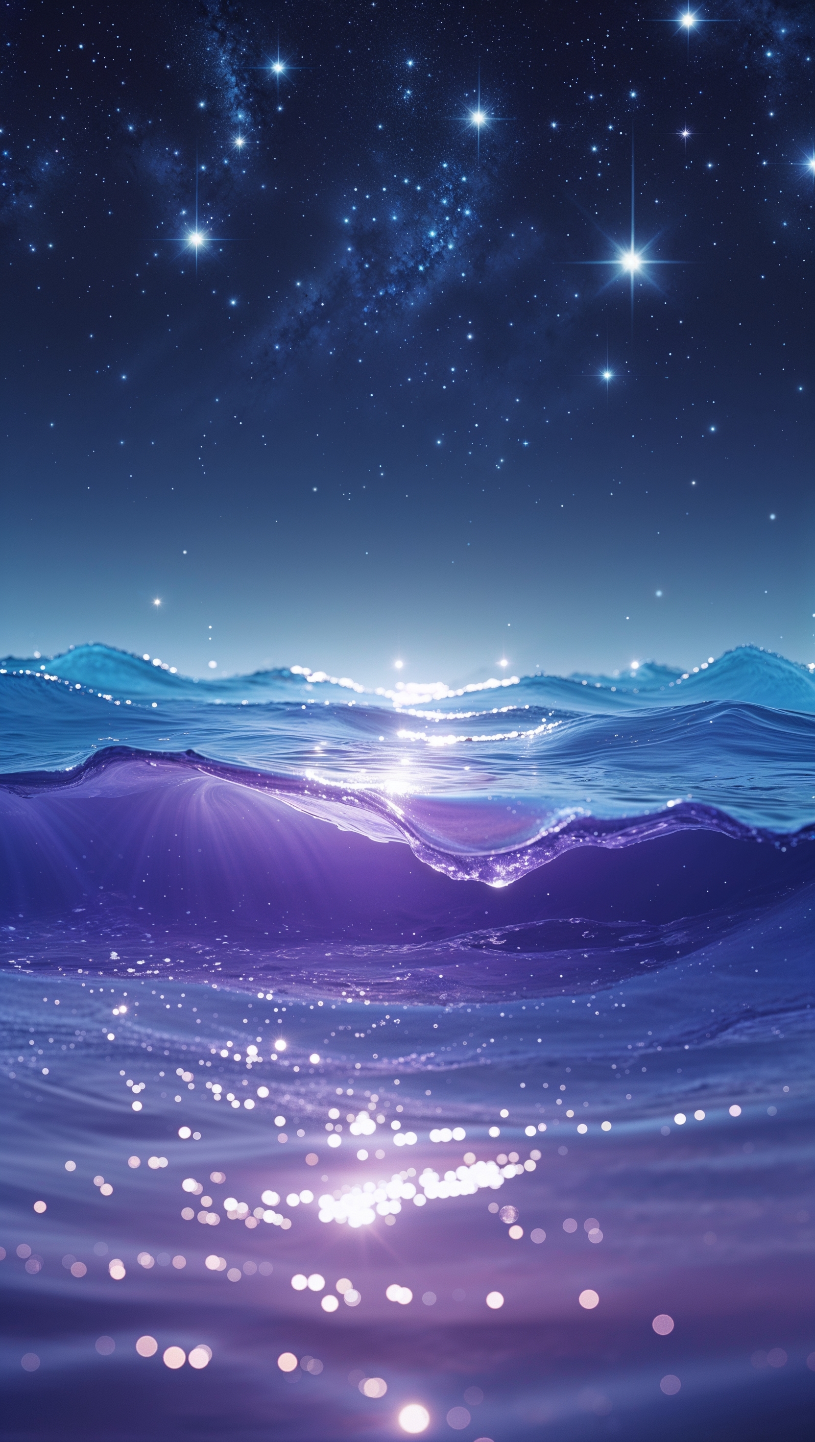 1664x2944 A crystal ocean under a sky full of stars, cosmic and spiritual feeling