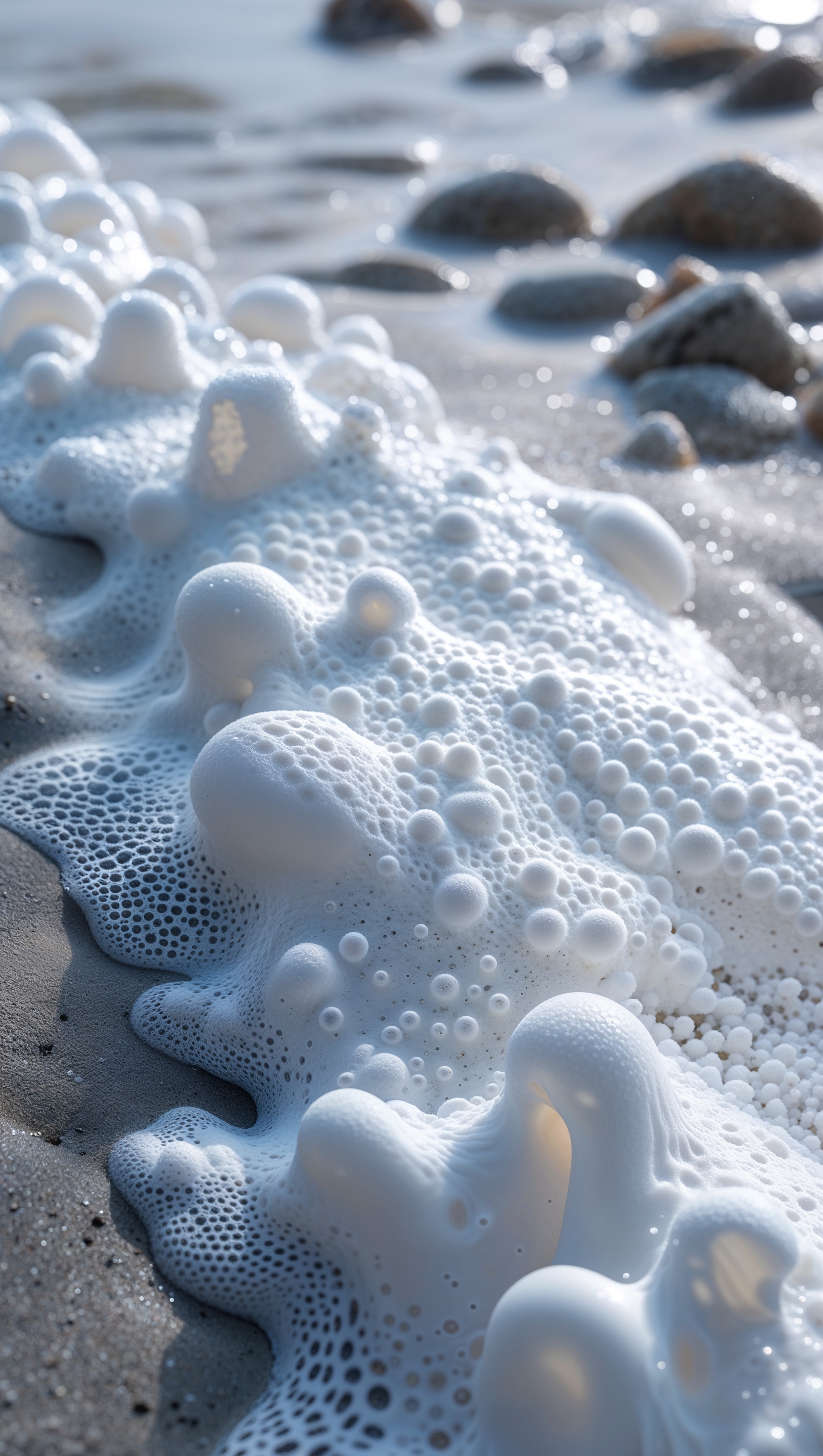 1664x2944 White foam on shorelines captured close-up, with texture-rich detail