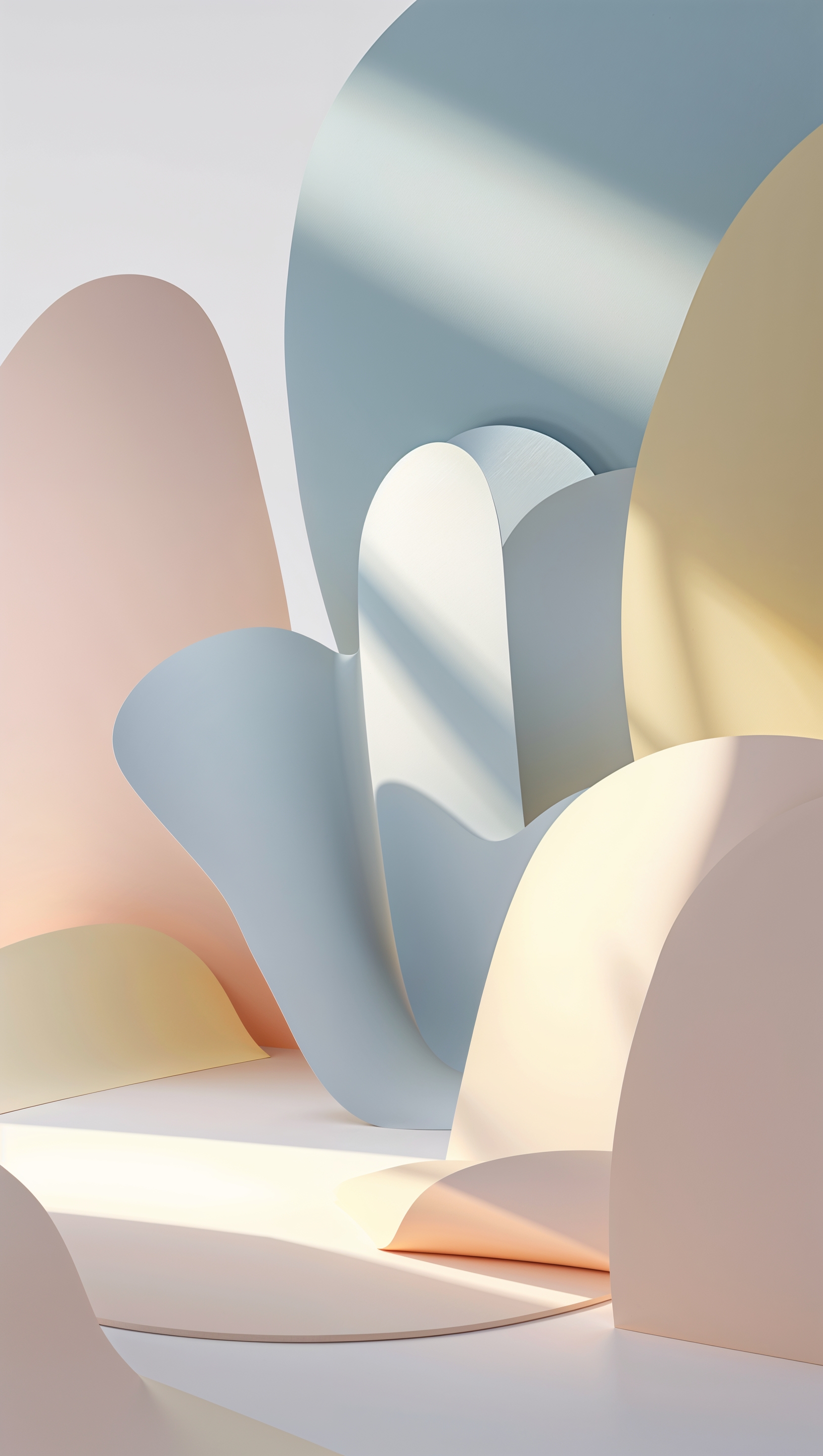 1664x2944 Minimal abstract pastel shapes overlapping with soft shadows, clean iPhone format