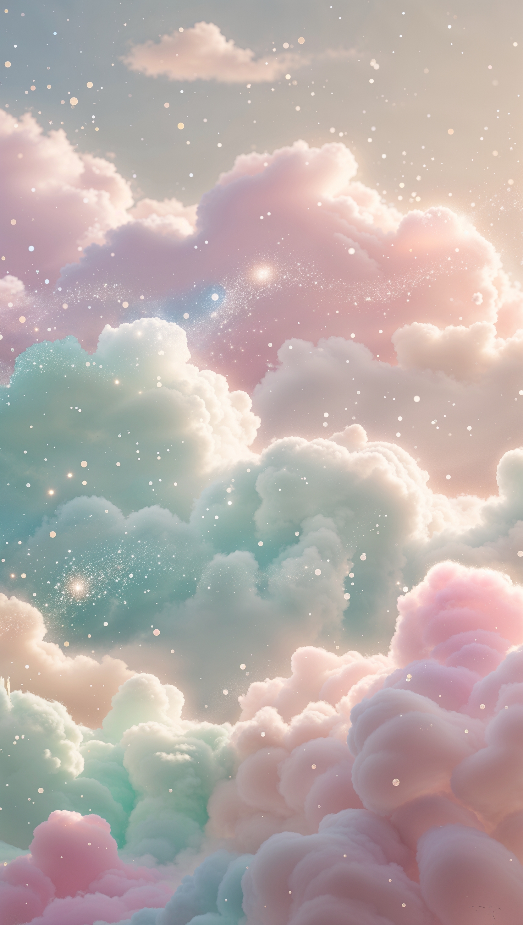 1664x2944 Pastel clouds in a dreamy sky with subtle sparkles and cotton candy tones