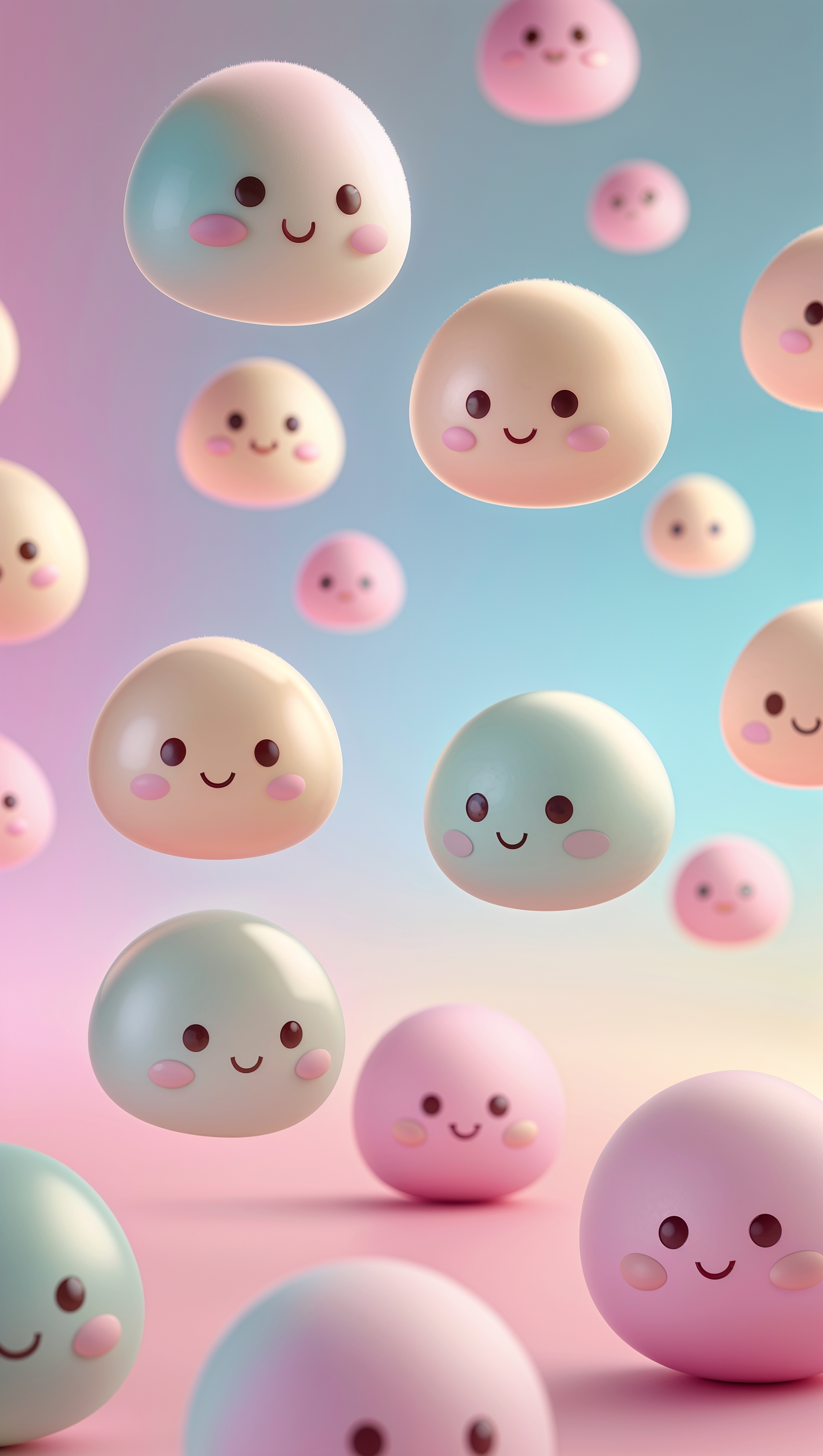 1664x2944 Cute pastel cartoon icons floating on a soft pink-blue background