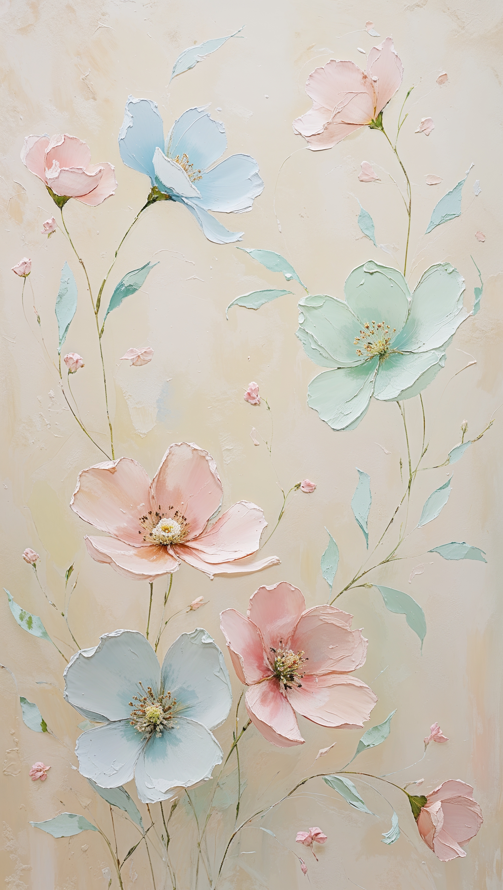 1664x2944 Delicate floral pattern in pastel tones over off-white canvas