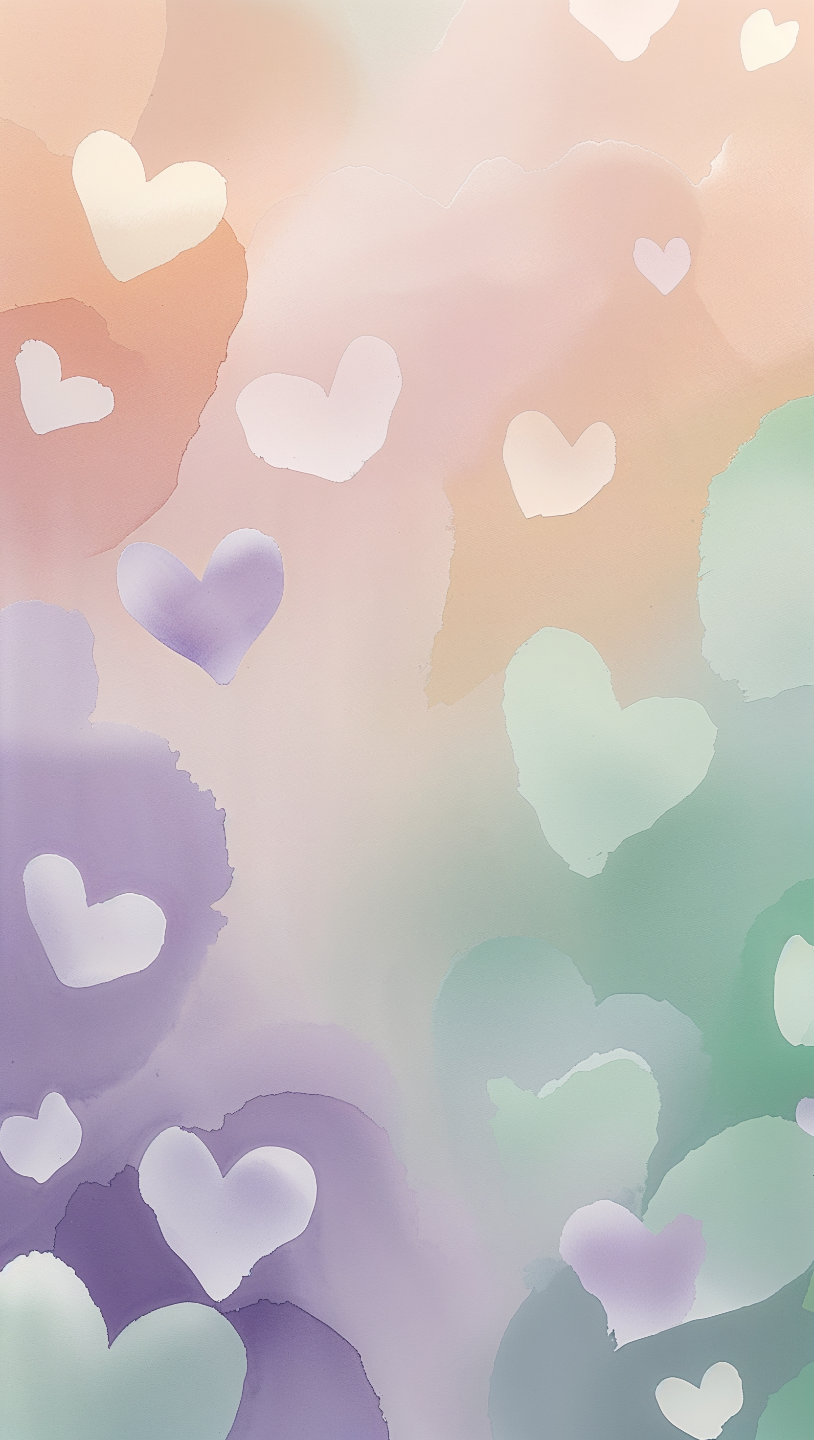 1664x2944 Gradient pastel wallpaper with heart shapes blending softly into the background