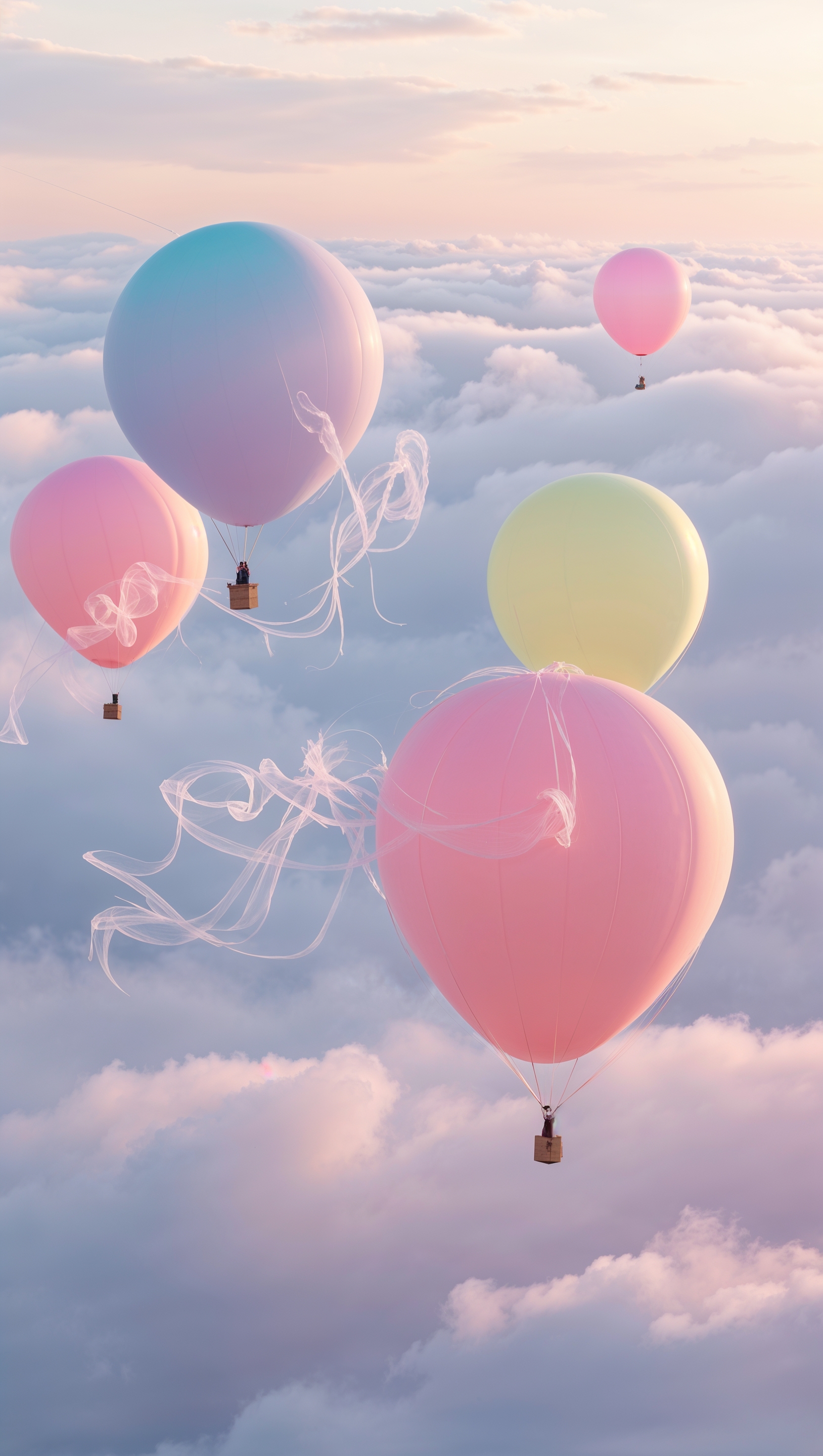 1664x2944 Pastel balloon scene floating in the sky, dreamy and uplifting