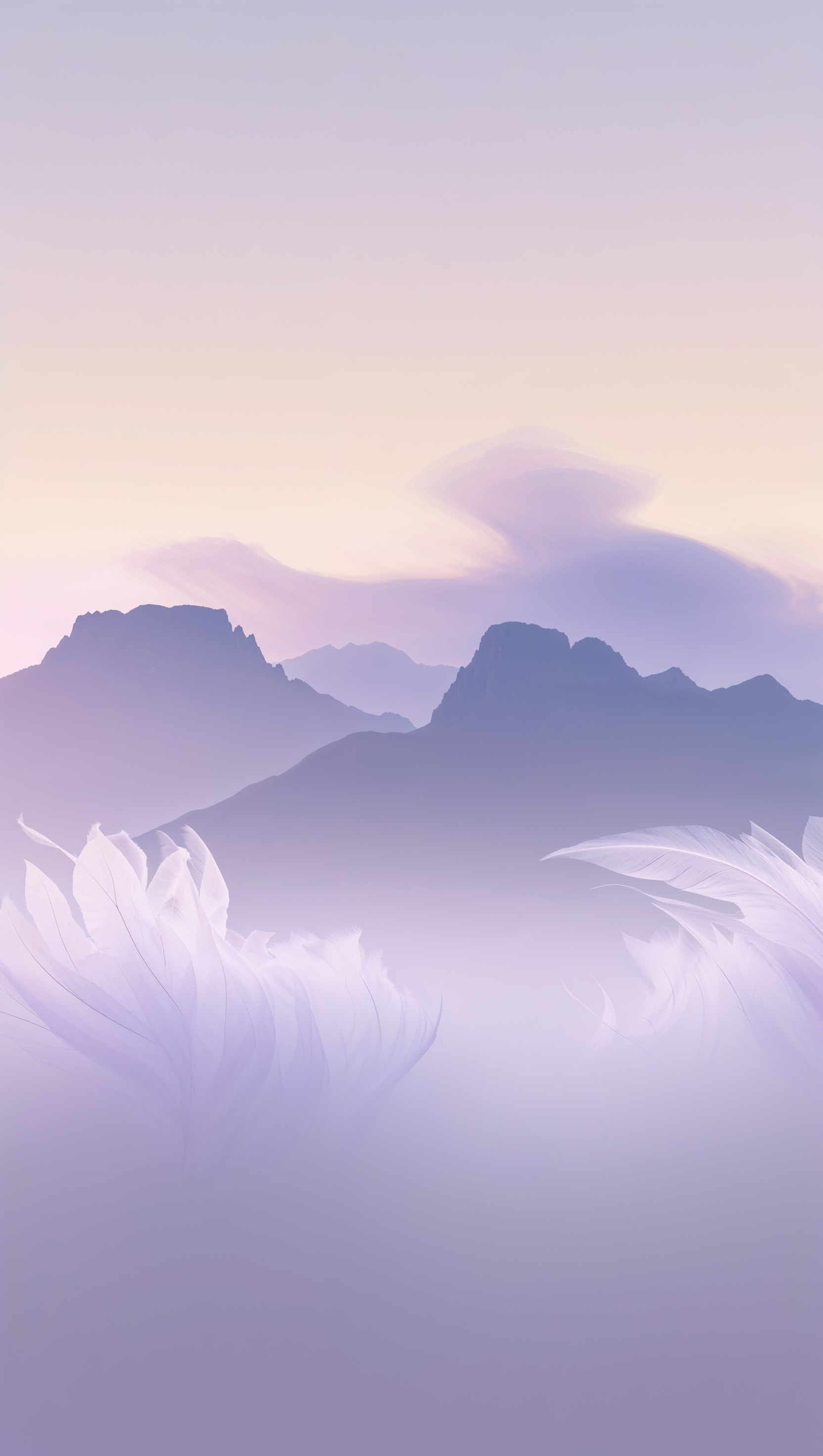 1664x2944 Calm pastel mist over mountain silhouettes, peaceful vertical layout
