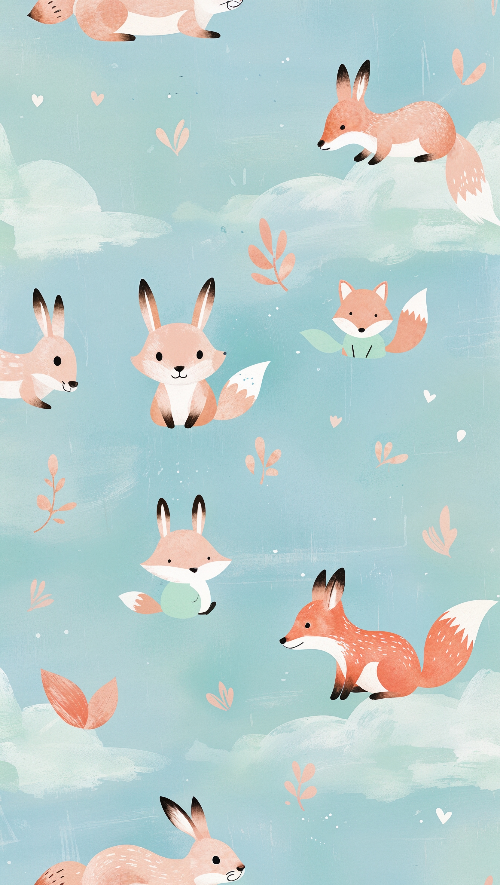 1664x2944 Cute animal doodles in pastel tones on a soft blue background