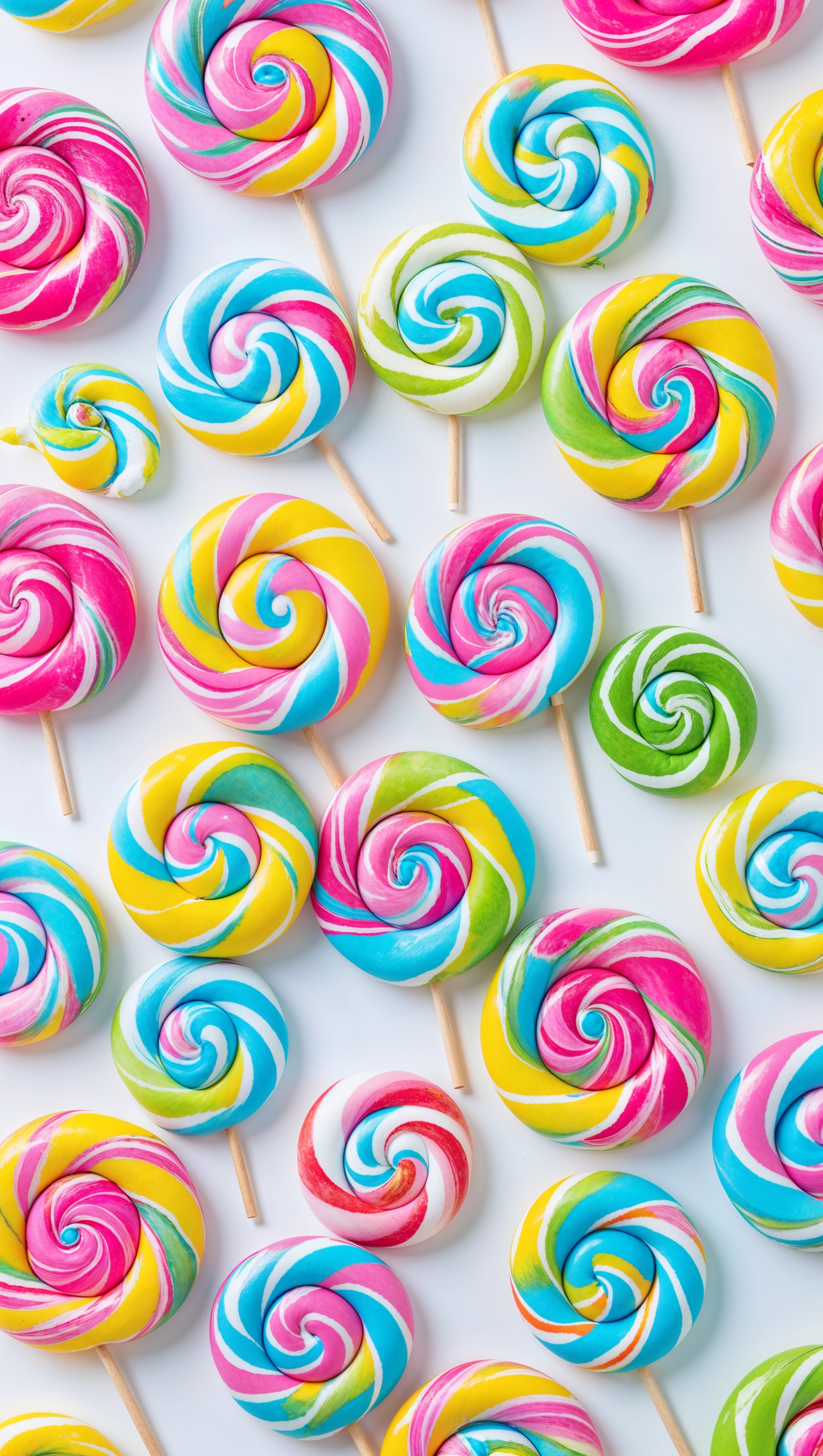 Colorful lollipop pattern on white background with playful vibe 1664x2944 Colorful lollipop pattern on white background with playful vibe