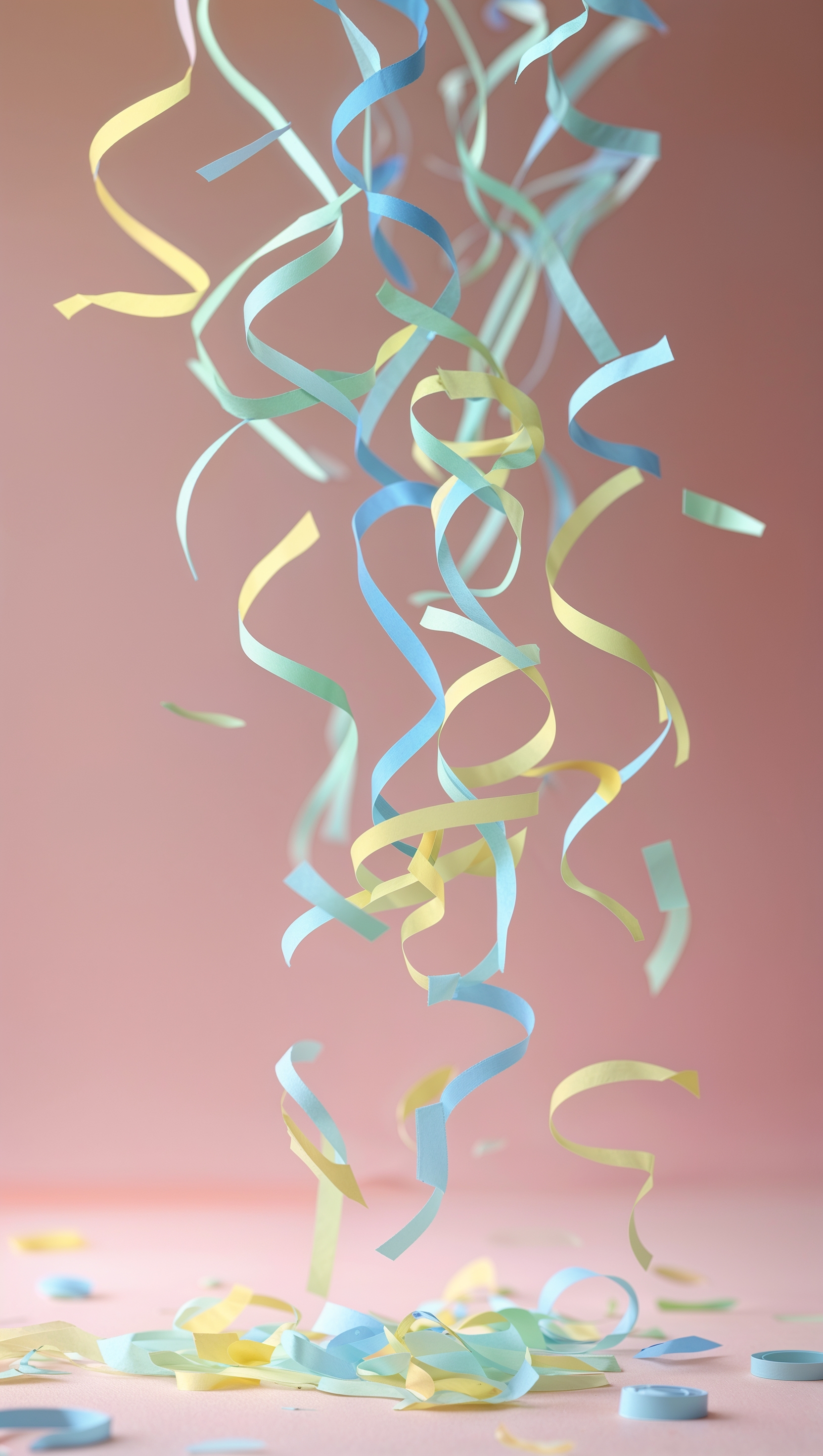 Bright pastel confetti falling on soft pink background 1664x2944 Bright pastel confetti falling on soft pink background