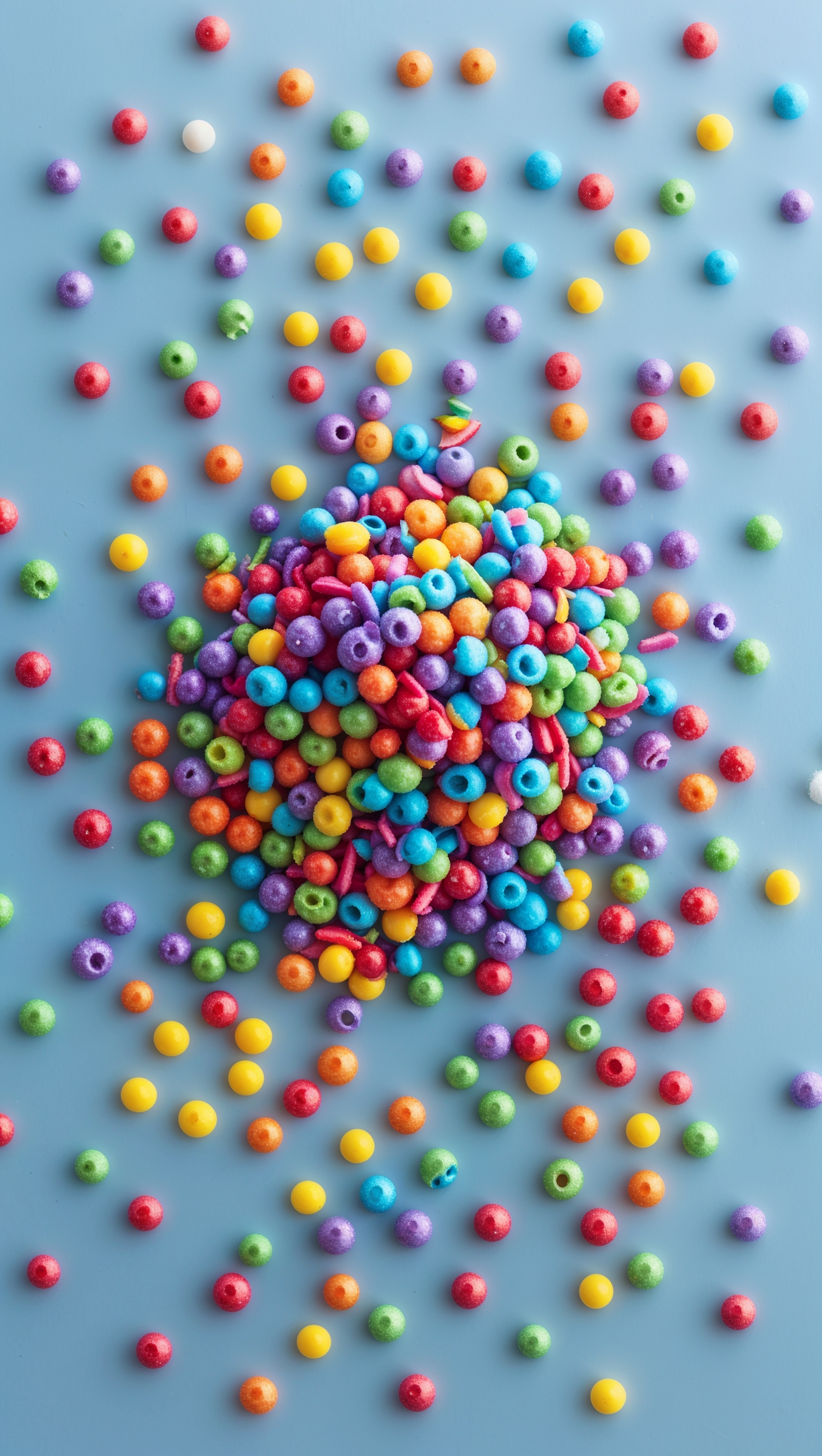 Rainbow sprinkles scattered over pastel blue background 1664x2944 Rainbow sprinkles scattered over pastel blue background