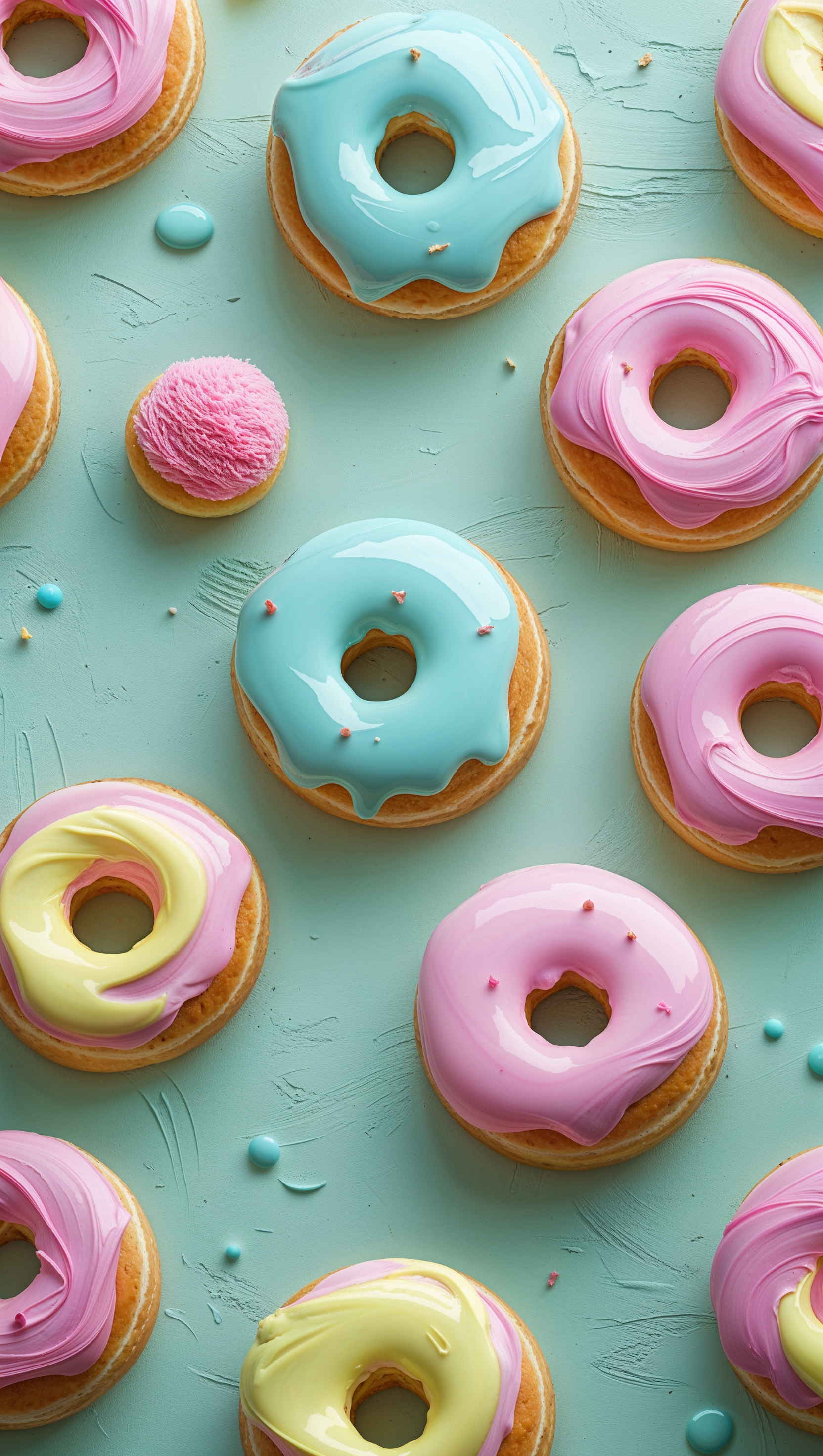Cute donut pattern with colorful icing on mint green background 1664x2944 Cute donut pattern with colorful icing on mint green background