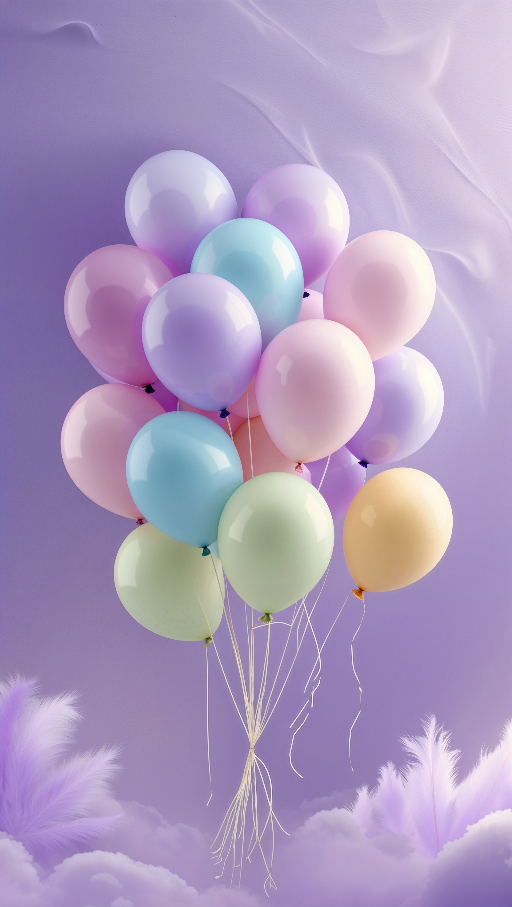 Playful balloons tied together floating over soft lavender backdrop 1664x2944 Playful balloons tied together floating over soft lavender backdrop
