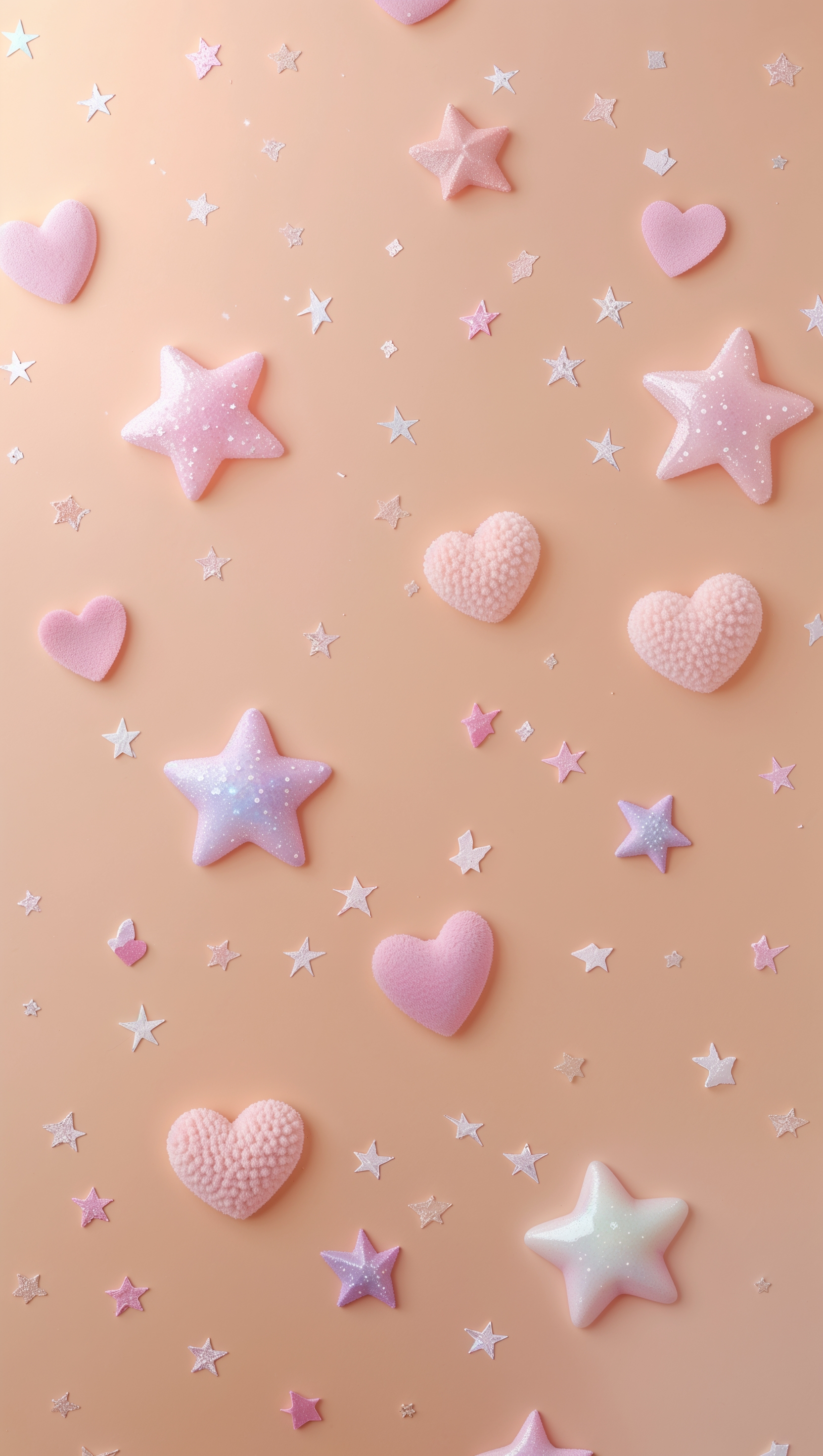 Tiny pastel stars and hearts mixed on pale peach background 1664x2944 Tiny pastel stars and hearts mixed on pale peach background