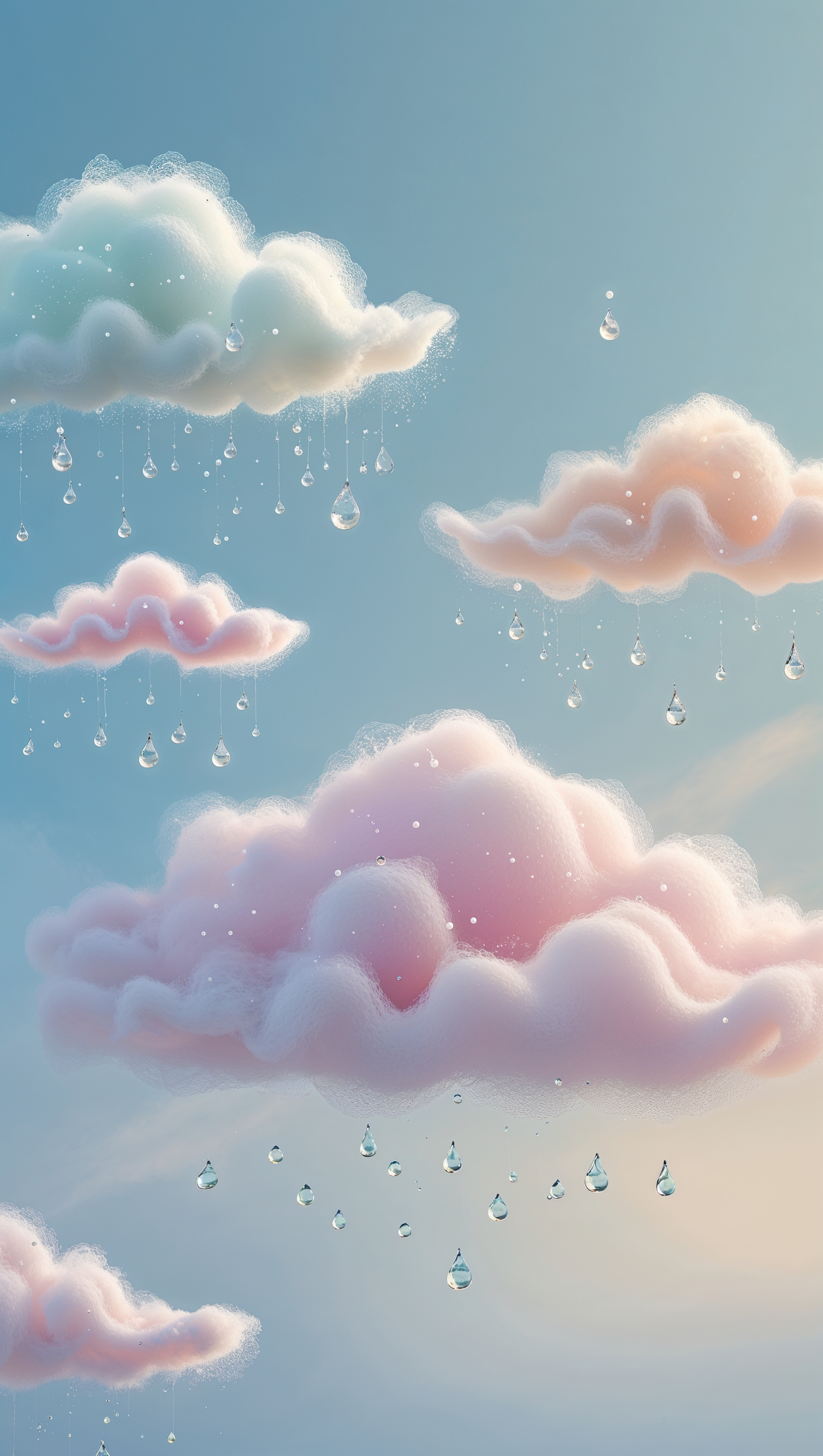 Soft pastel clouds with gentle rain drops on baby blue background 1664x2944 Soft pastel clouds with gentle rain drops on baby blue background