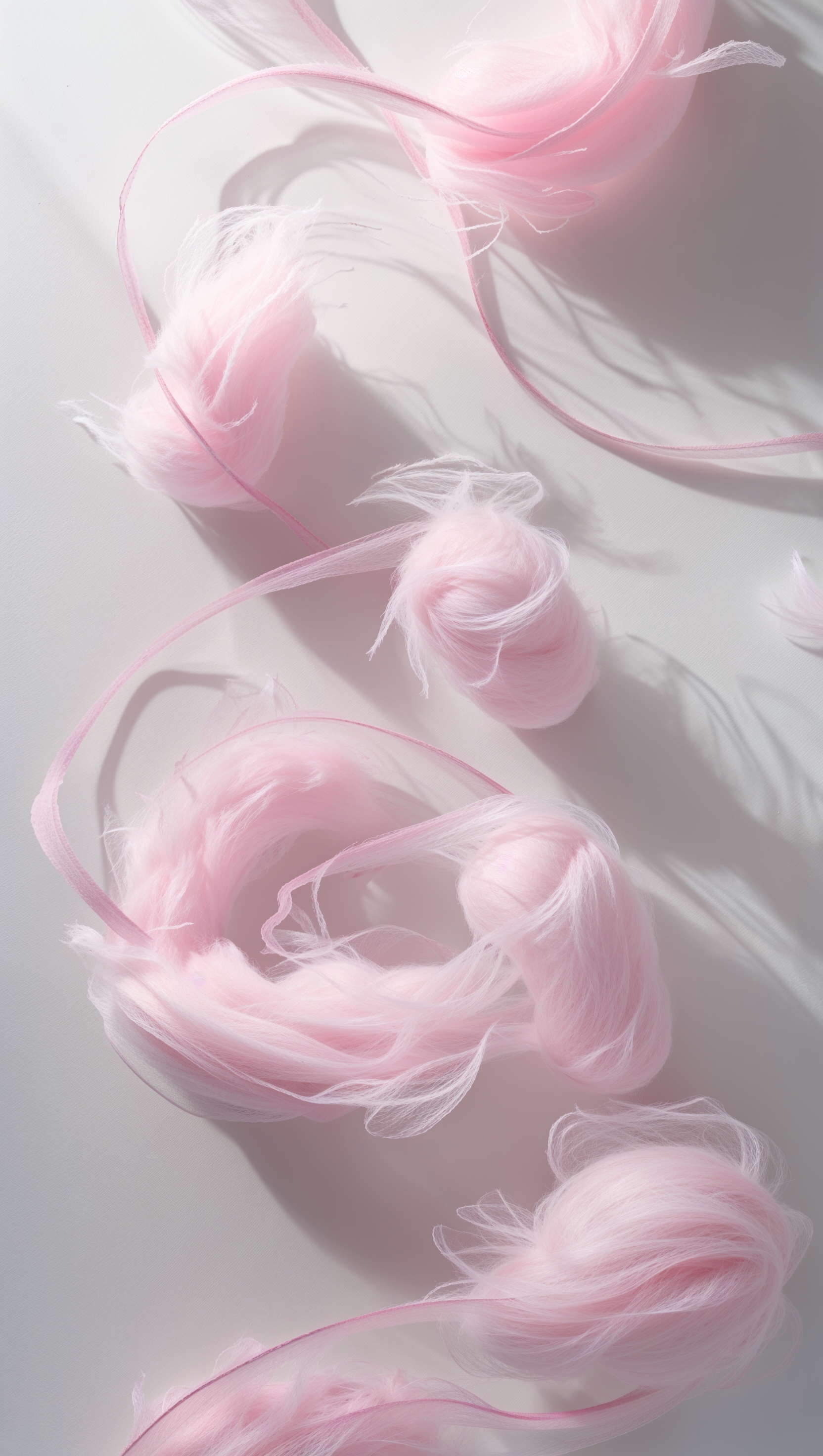 Pink cotton candy swirls on white background with soft shadows 1664x2944 Pink cotton candy swirls on white background with soft shadows