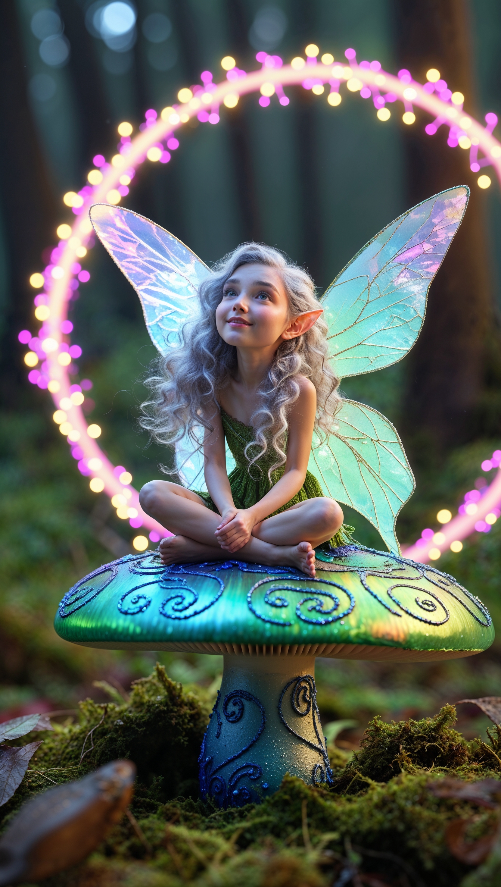 Little fairy sitting on a mushroom with glowing lights around 1664x2944 Little fairy sitting on a mushroom with glowing lights around