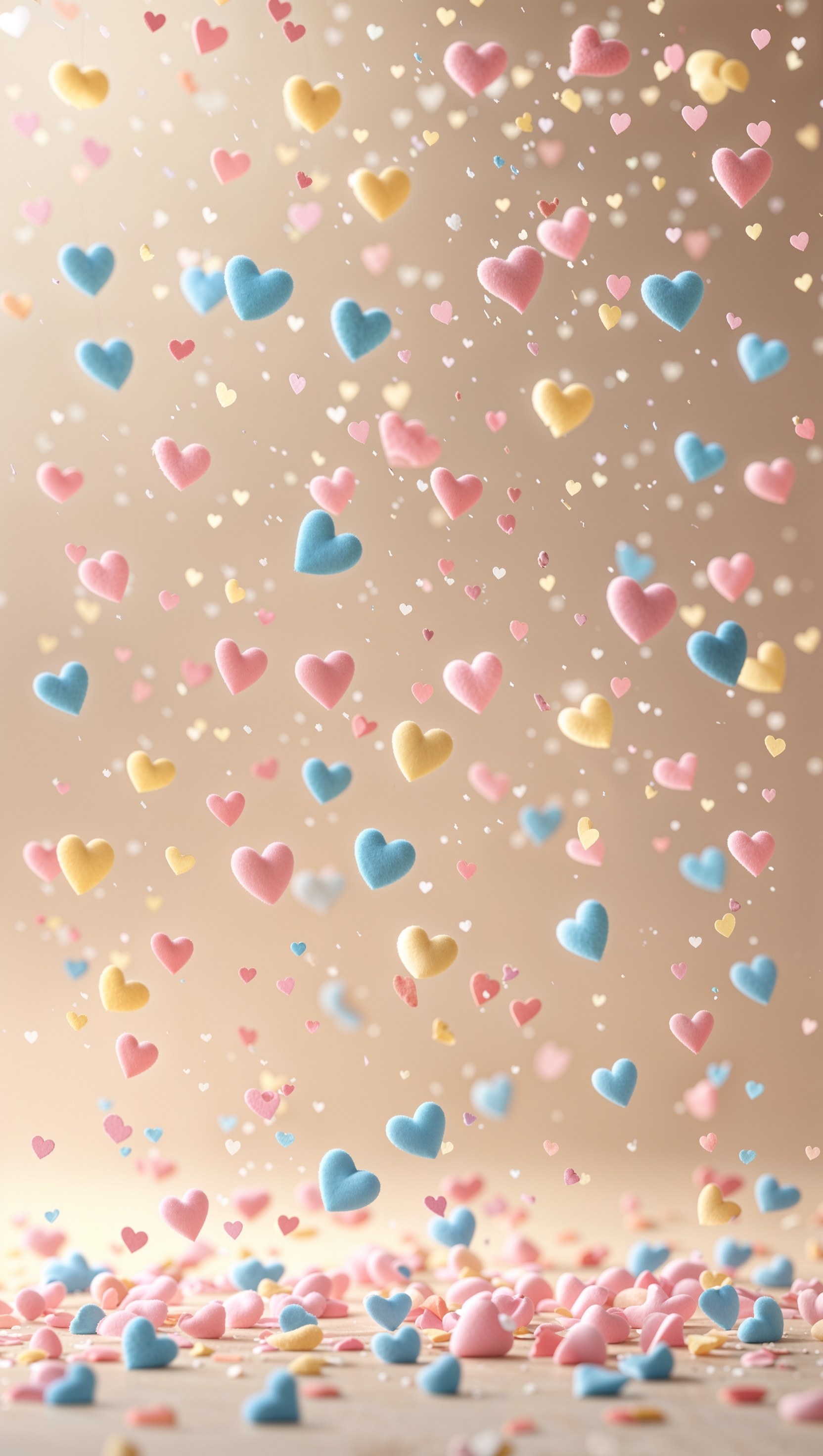 Tiny pastel hearts raining down on light beige background 1664x2944 Tiny pastel hearts raining down on light beige background
