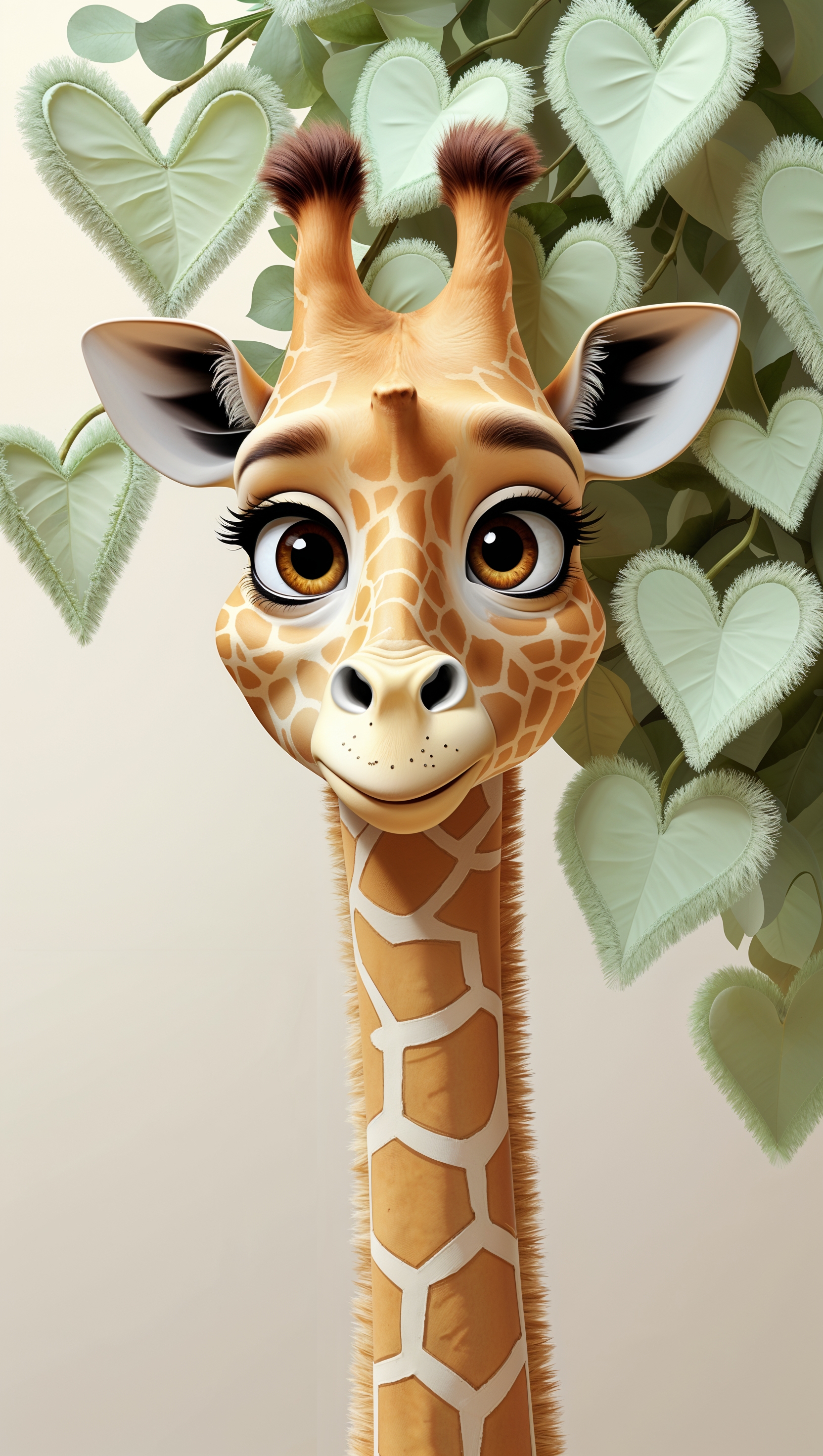 Cute giraffe cartoon peeking behind pastel green leaves 1664x2944 Cute giraffe cartoon peeking behind pastel green leaves