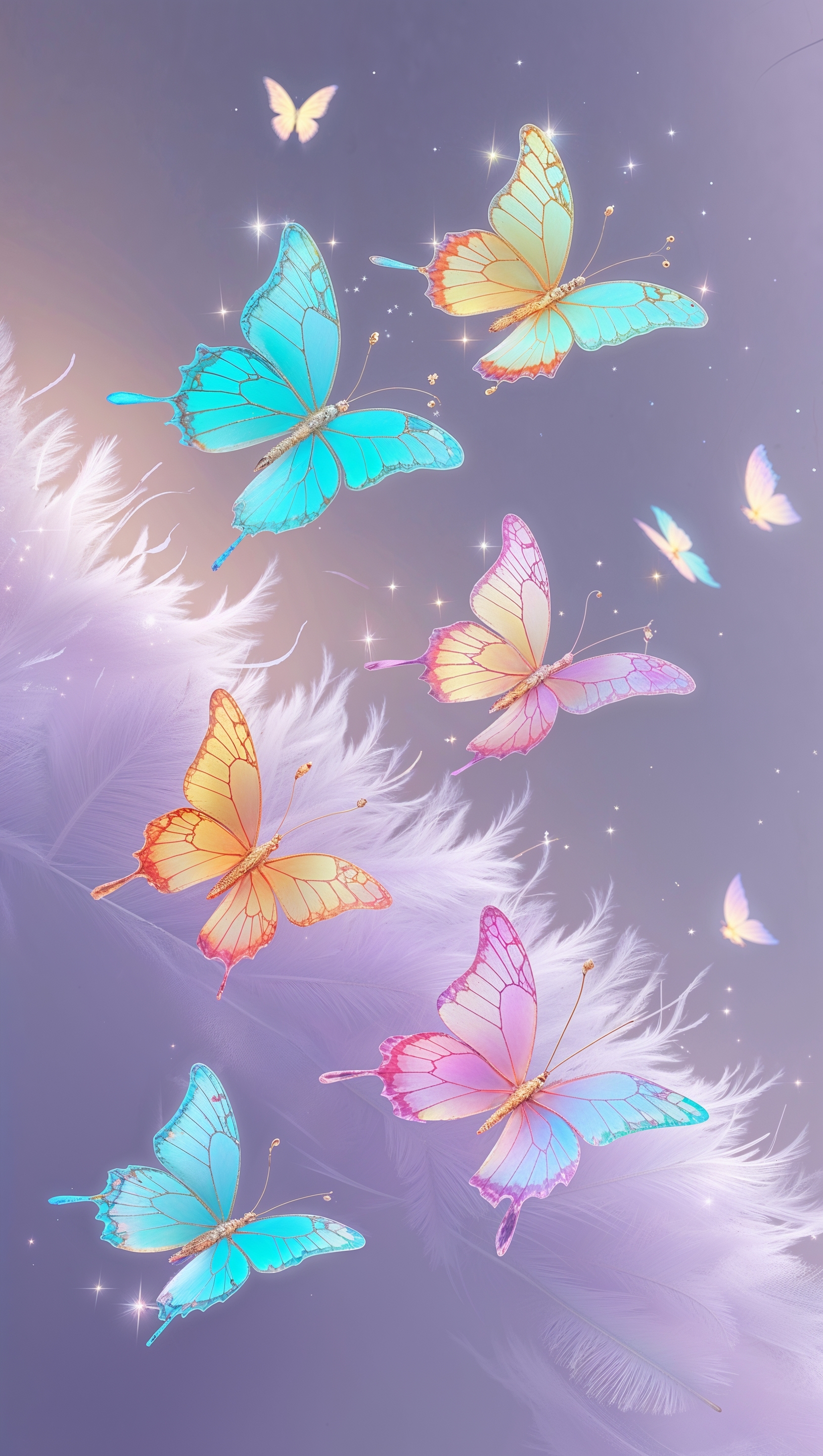 Small colorful butterflies fluttering on pale lavender background 1664x2944 Small colorful butterflies fluttering on pale lavender background