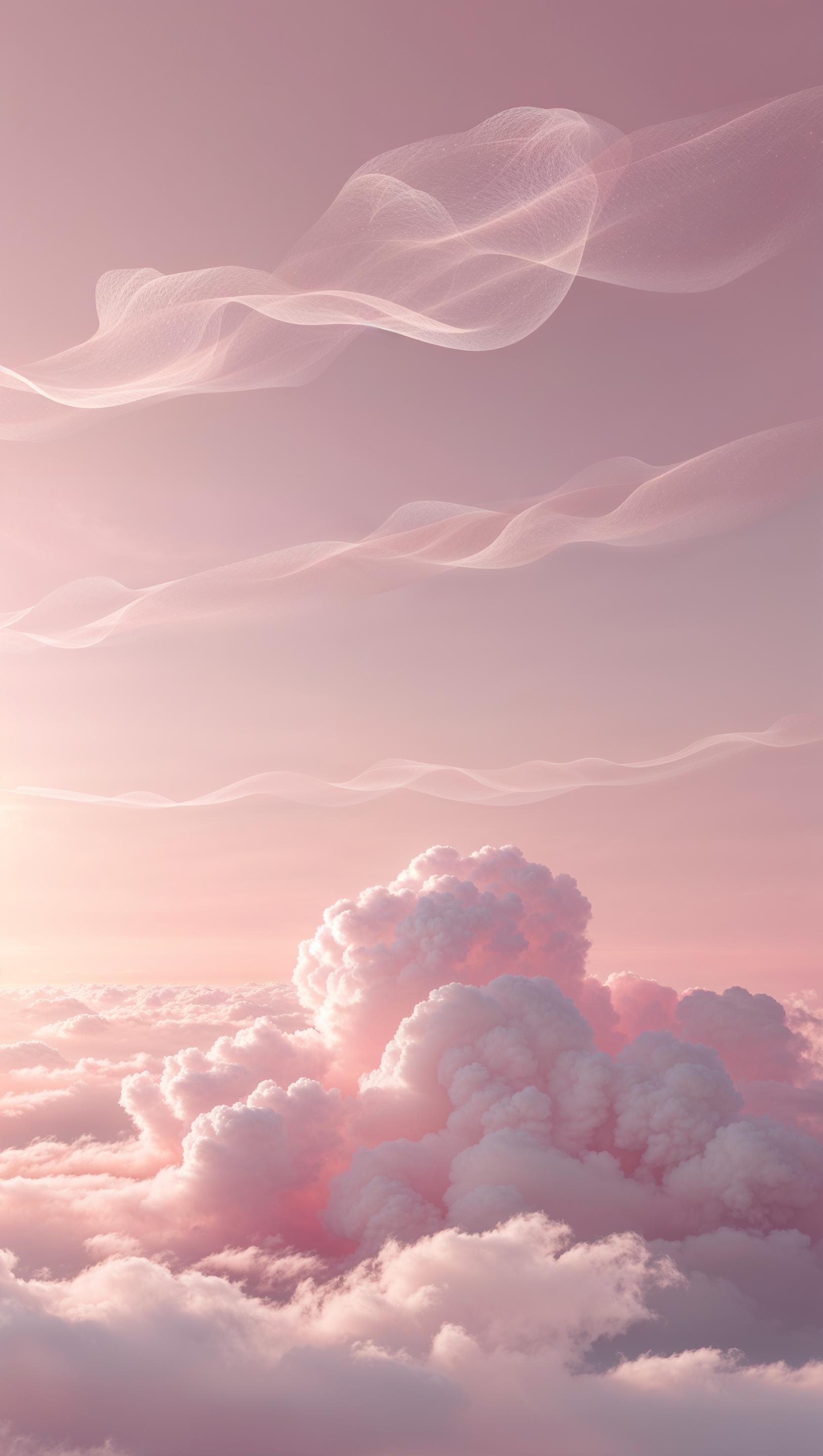 Fluffy white clouds drifting on pastel pink sky 1664x2944 Fluffy white clouds drifting on pastel pink sky