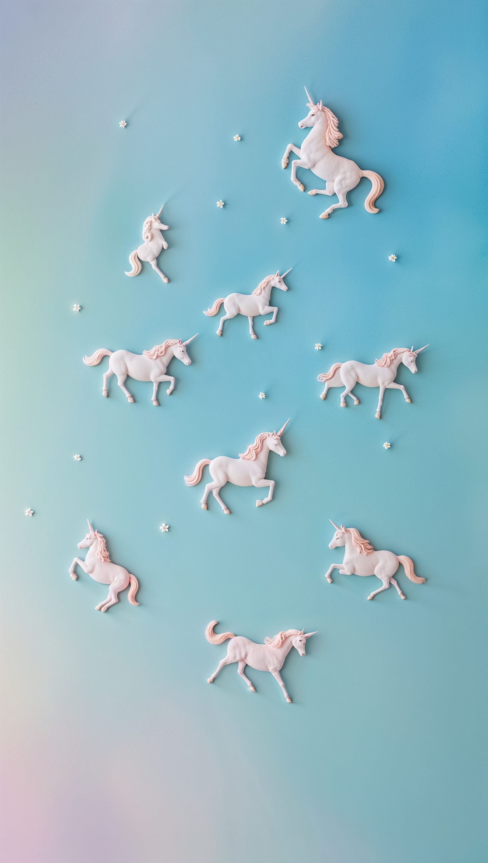 Tiny unicorn silhouettes scattered on pastel blue background 1664x2944 Tiny unicorn silhouettes scattered on pastel blue background