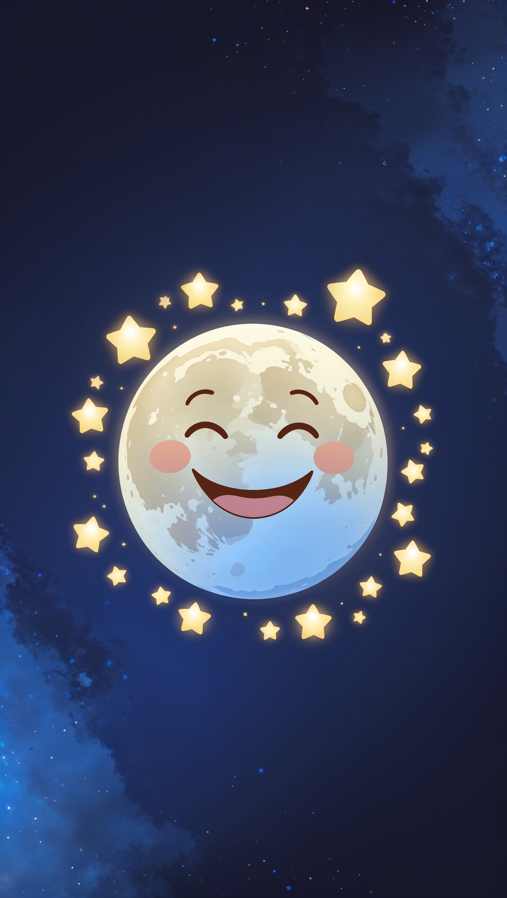 Cute smiling moon surrounded by glowing stars on navy background 1664x2944 Cute smiling moon surrounded by glowing stars on navy background