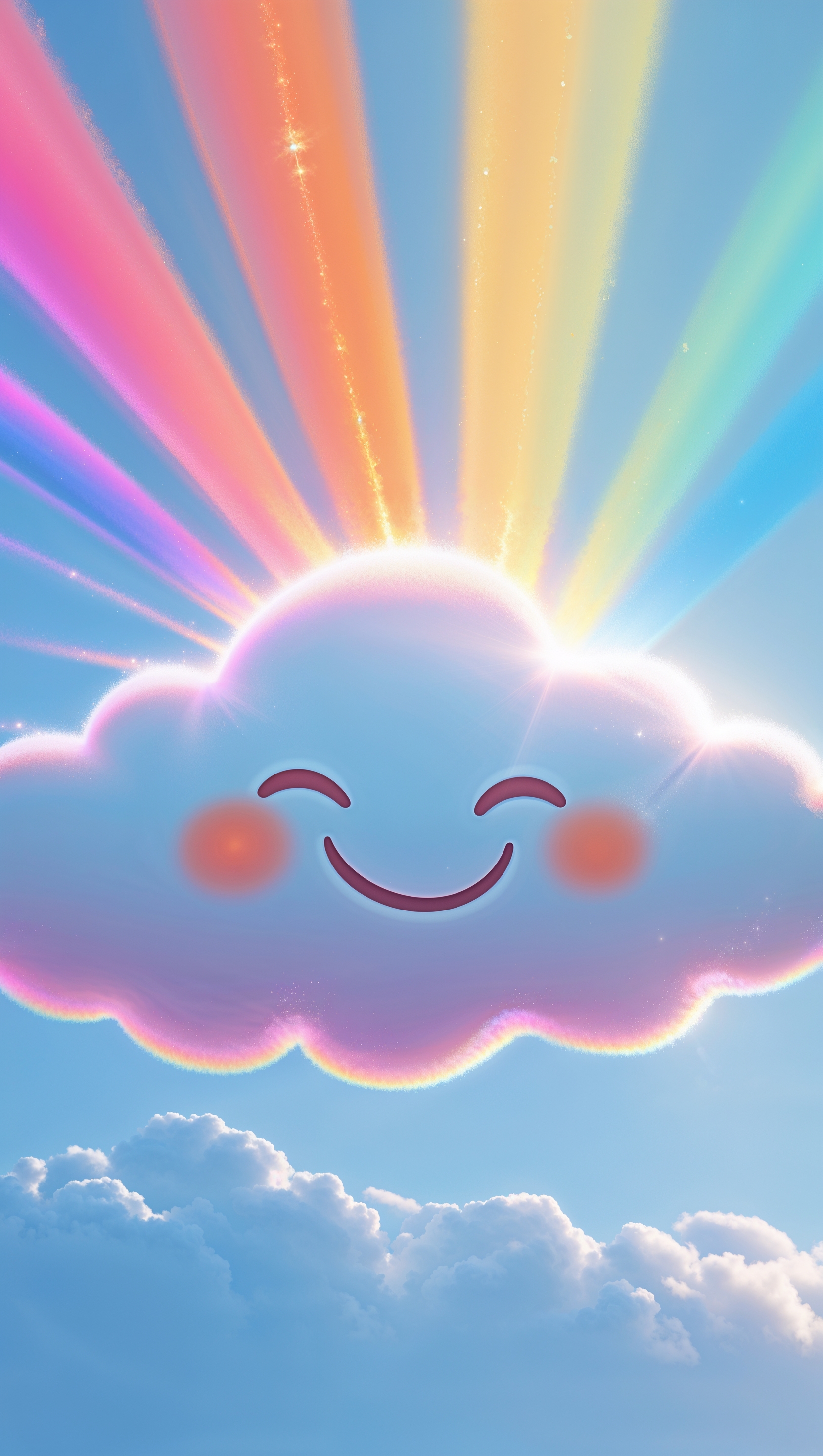 Smiling cloud with rainbow beams on baby blue sky 1664x2944 Smiling cloud with rainbow beams on baby blue sky