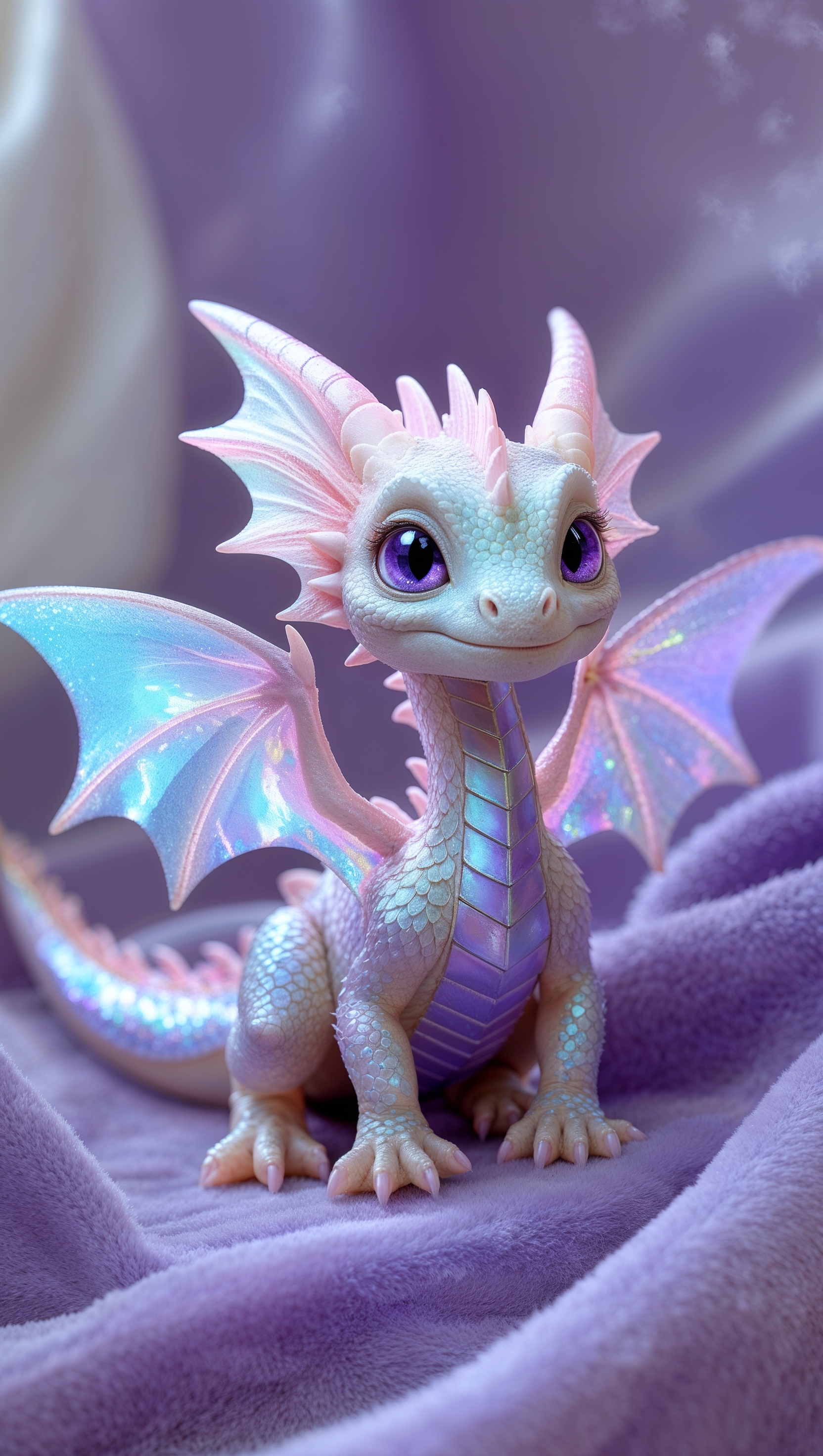 Cute little dragon with sparkly wings on soft lavender backdrop 1664x2944 Cute little dragon with sparkly wings on soft lavender backdrop