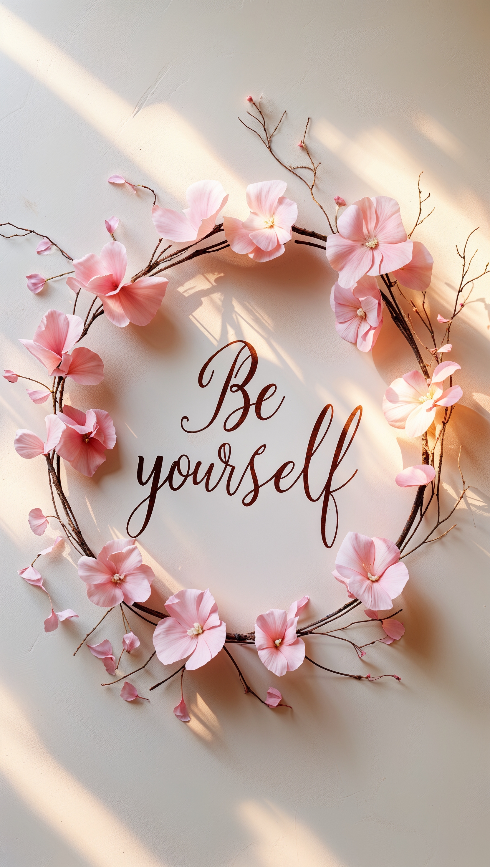 Pink floral wreath framing a delicate handwritten quote "Be yourself" 1664x2944 Pink floral wreath framing a delicate handwritten quote "Be yourself"