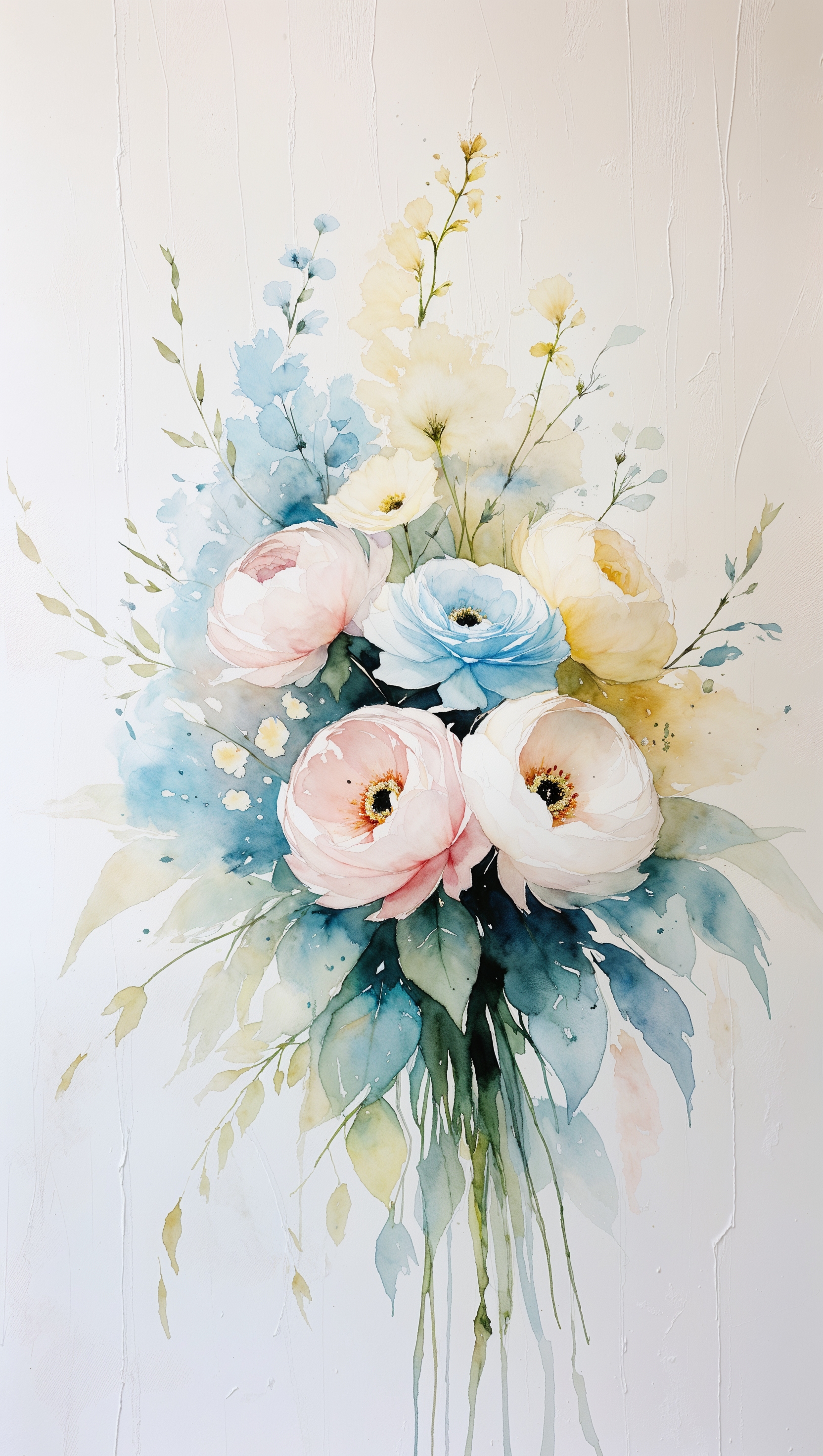 Watercolor floral bouquet in pastel tones on white vertical background 1664x2944 Watercolor floral bouquet in pastel tones on white vertical background