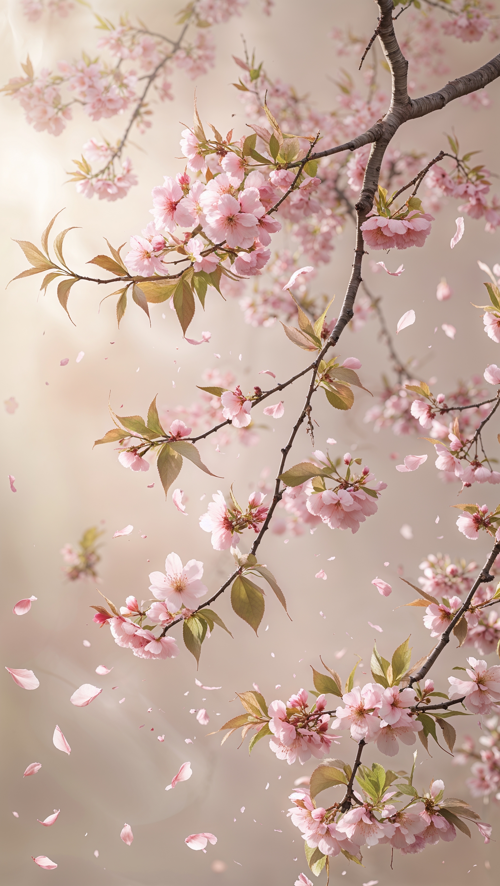 Delicate cherry blossom branches with falling petals on soft pink 1664x2944 Delicate cherry blossom branches with falling petals on soft pink