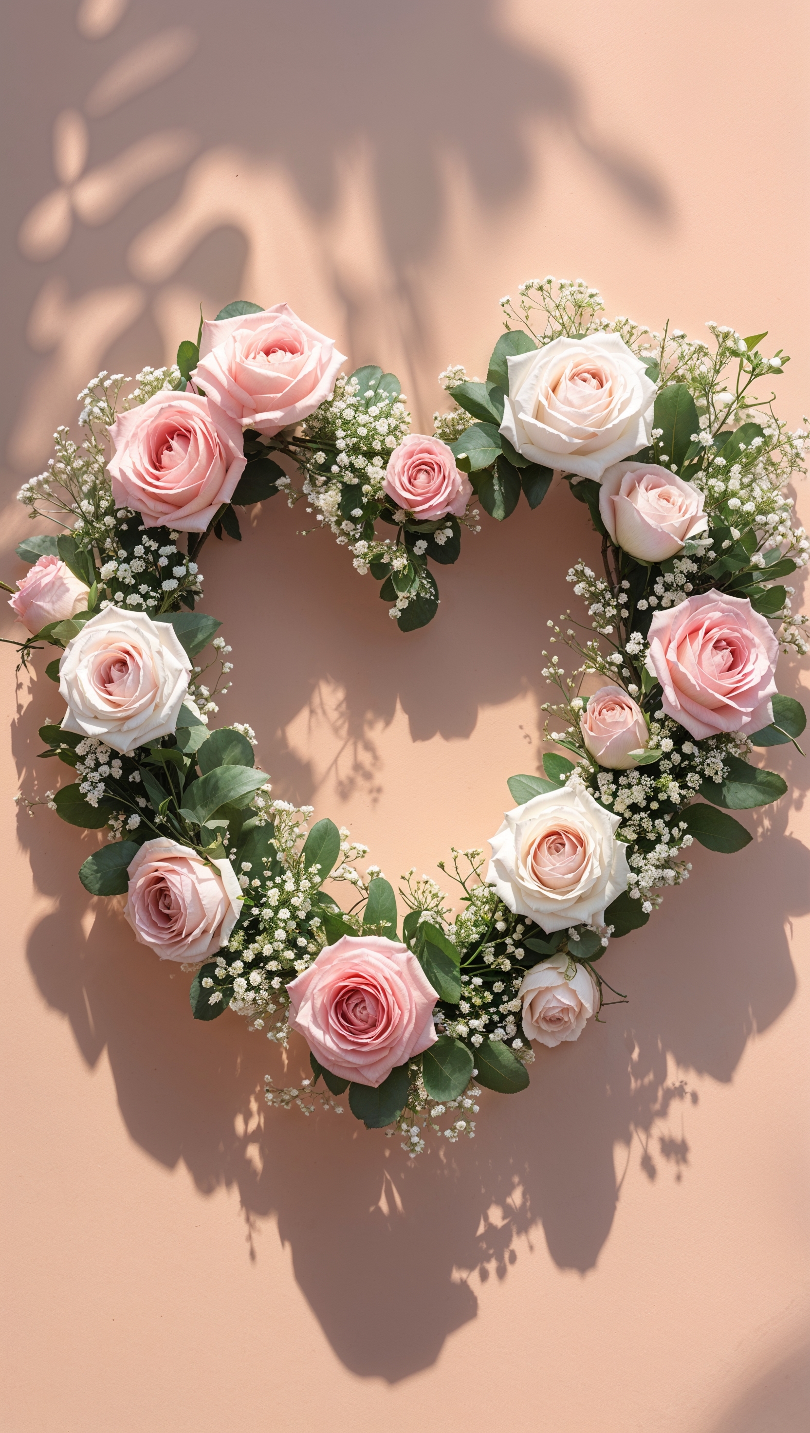 Romantic heart-shaped flower arrangement on light peach background 1664x2944 Romantic heart-shaped flower arrangement on light peach background