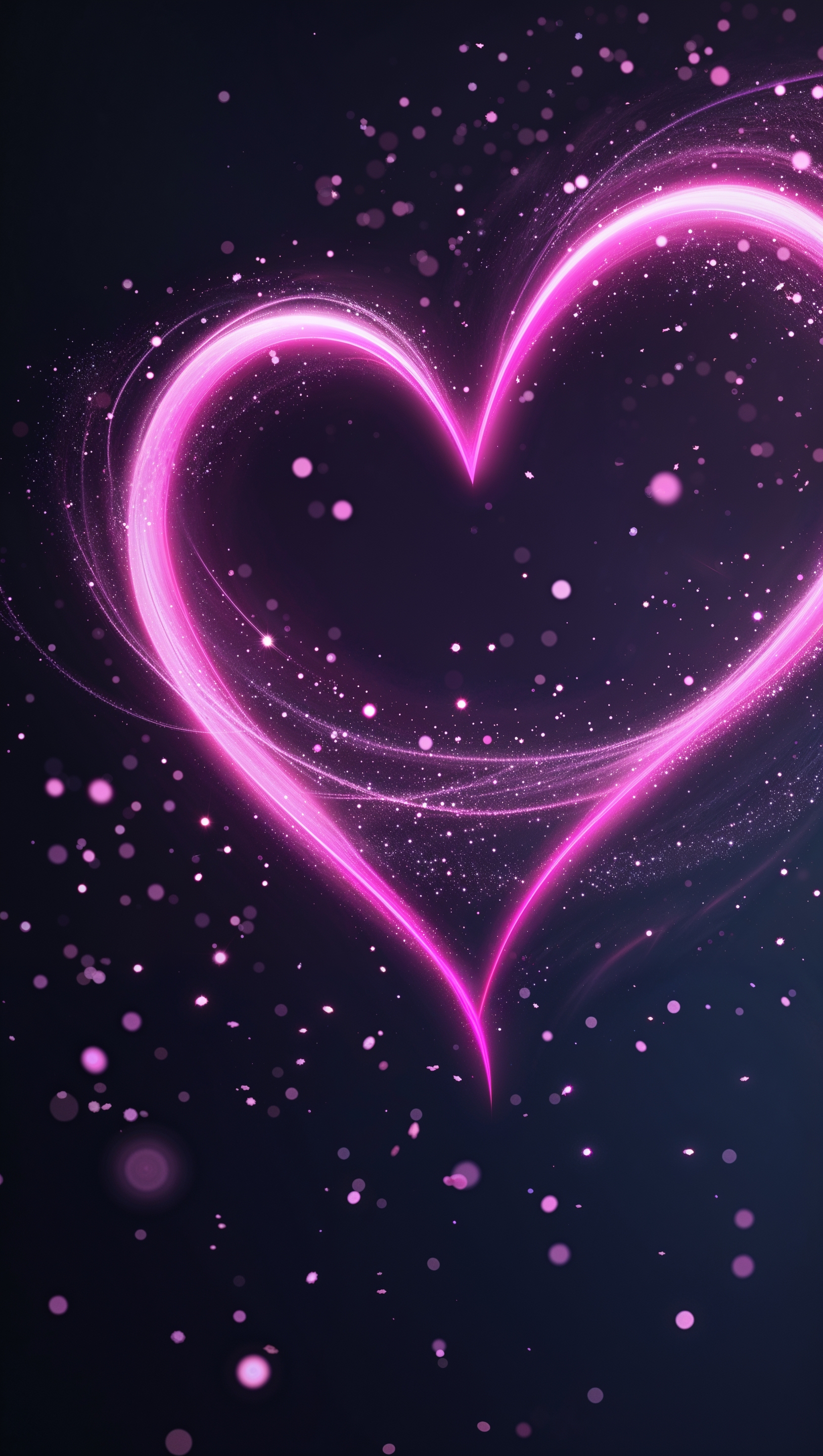 Neon pink heart glowing on black background with sparkles 1664x2944 Neon pink heart glowing on black background with sparkles