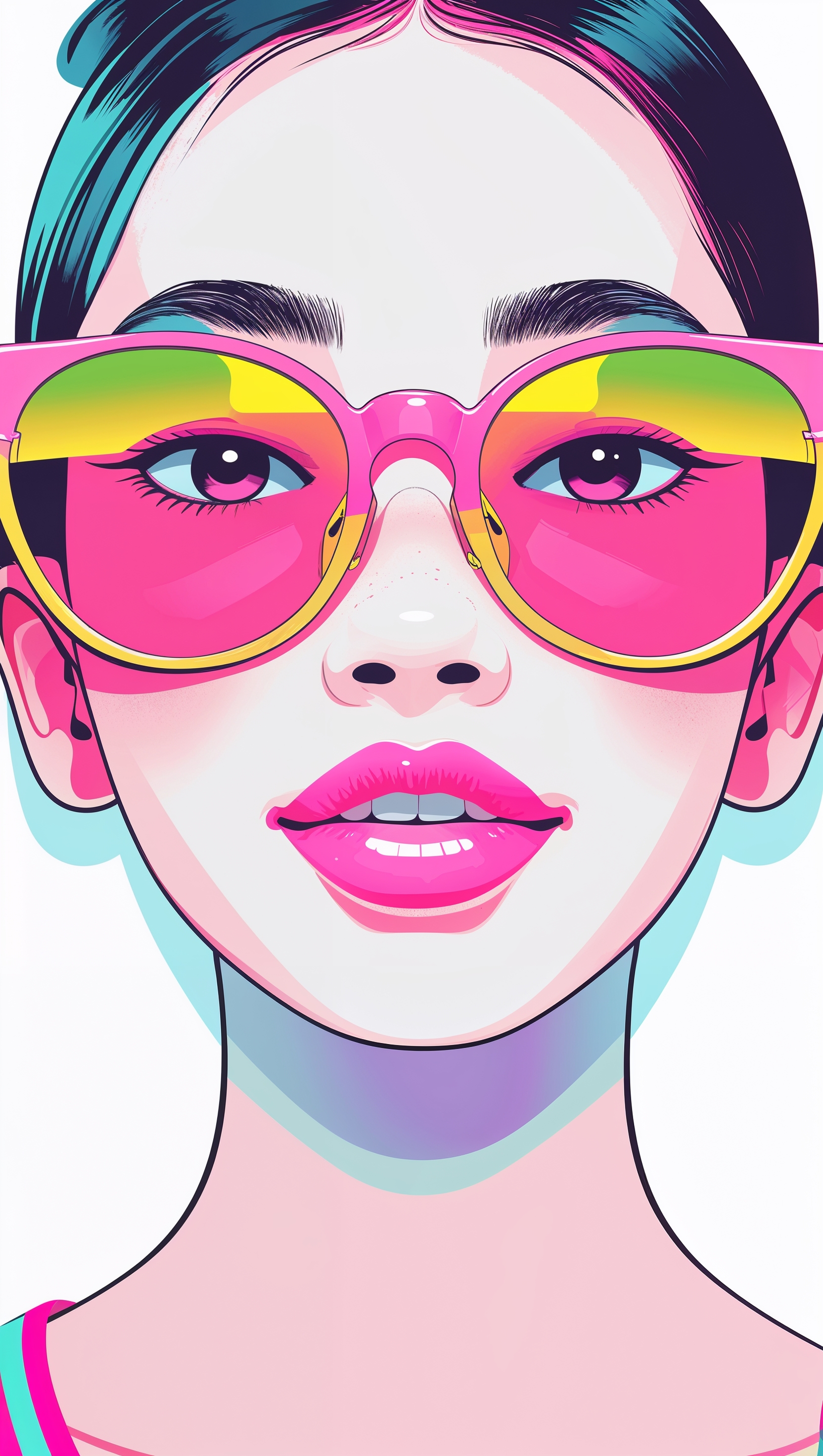 Flat digital illustration of girl with oversized sunglasses and pink lips 1664x2944 Flat digital illustration of girl with oversized sunglasses and pink lips